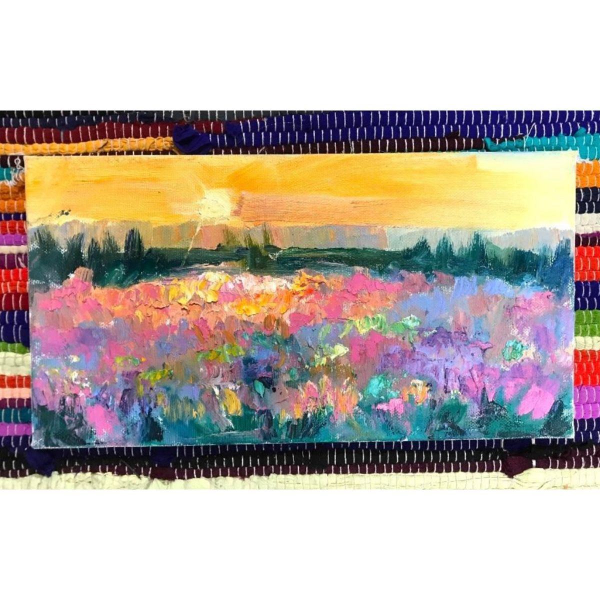 21st Century Ukrainian Impressionism, Sunset Landscape. 8" X 15". Signed & dated on the reverse by the artist, Natalia Nosyk.