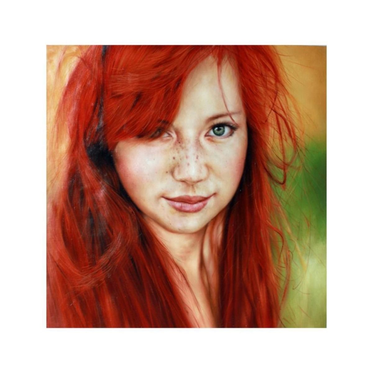 21stc photorealism, oil on canvas study of Samuel Silva's "Redhead Girl". The original illustration created using a simple ball point pen. Portugal-based art enthusiast Samuel Silva, aka Viana Arts is a 29-year-old lawyer who practices drawing as a hobby. Signed on reverse, R. Bianco. - 9813-012118-RB-00018