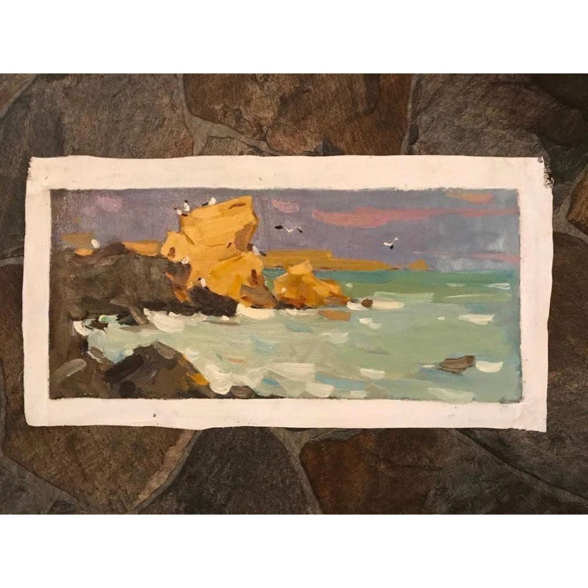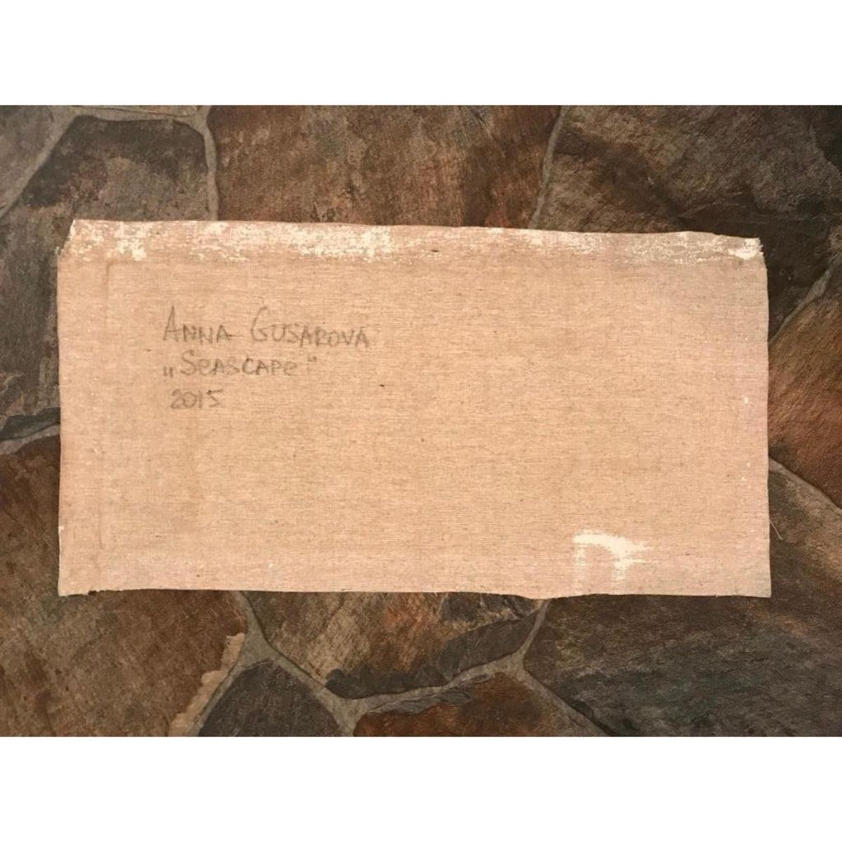 21st-Century Ukrainian Impressionism, "Seascape" oil on canvas painting, unstretched. Signed, Anna Gusarova 2015, verso.8" X 17 1/2".