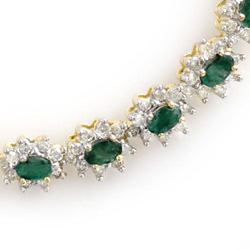 REF-771X8T -13987 ---- 22.0 CTW Emerald & Diamond Necklace 14K Yellow Gold ---- Luxury Designer Brand Necklace Appraised at $55,200 Certificate Number US13987 14k Yellow gold, Necklace Size is 16 Incehs, Necklace measuring approx. 17" x 5/16", weighing in total approx. 48 grams. Made in the USA and is stamped 14k, Main stone 12.4 carat total weight containing 47 pieces of Intense Green color with AAA quality Oval shape cut Emerald , Stone #2 9.6 carat total weight containing 423 pieces of H-I color with VS/SI quality Round shape cut Diamond
