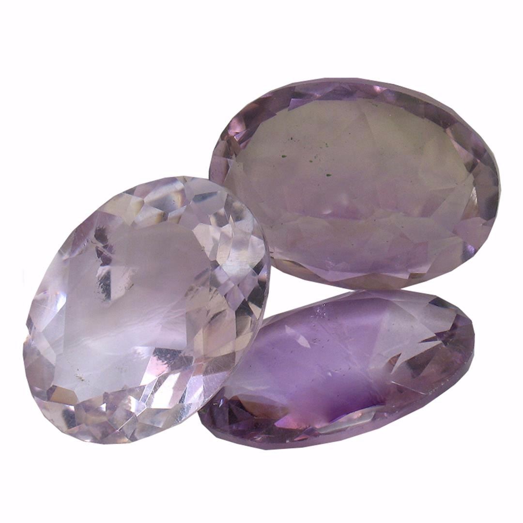 Three oval mixed cut natural amethysts exact total weight 22.03ct., clarity is slightly included, type II, medium dark, very slightly grayish, purple color, (GIA P 6/3), cut is good. Westfield Appraised at $765.00.