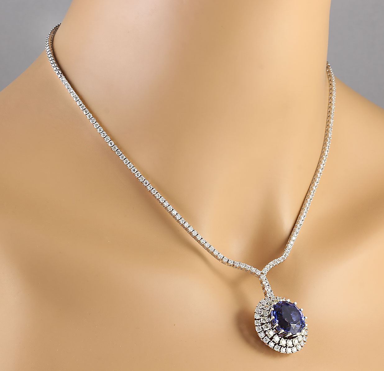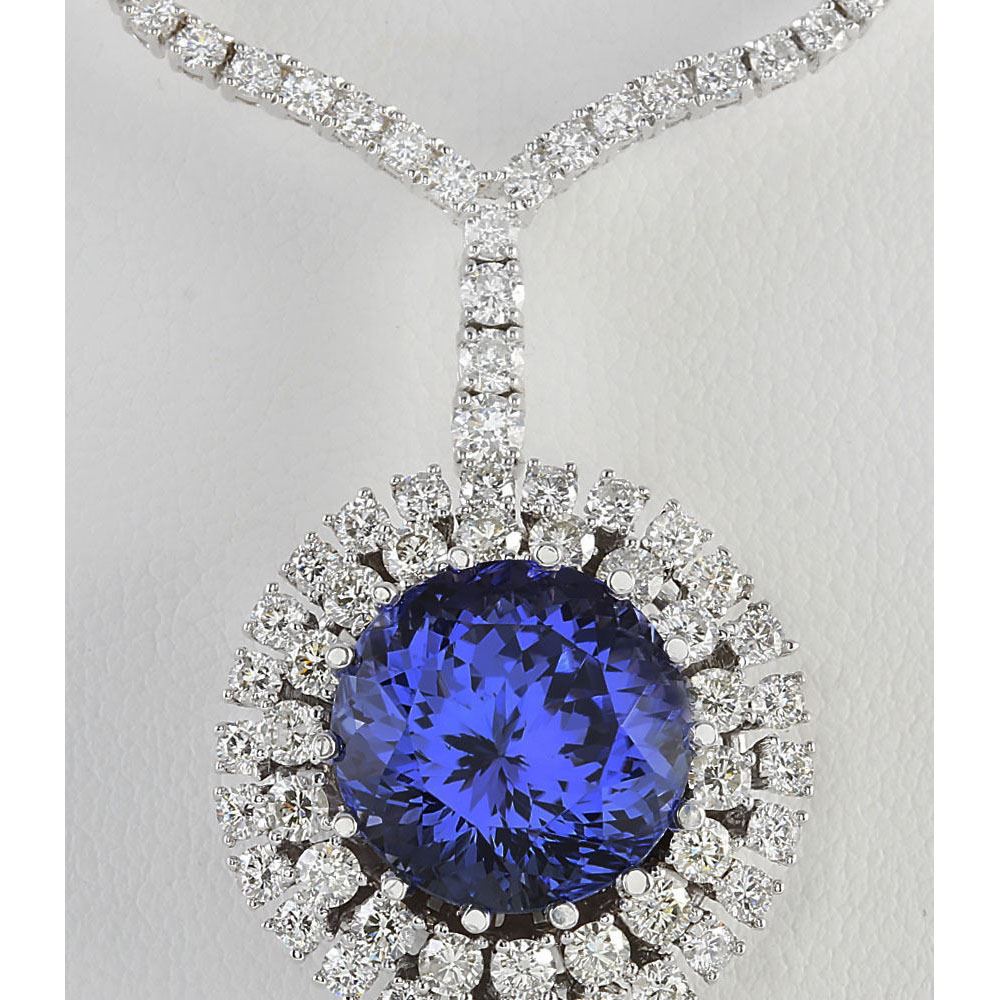 22.09 CTW Natural Tanzanite And Diamond Necklace In 18K White Gold