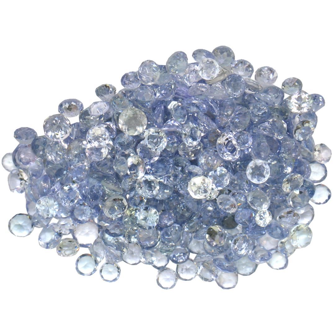 Fifty round mixed cut natural tanzanites, measuring 2.00 - 2.00 x 1.30 mm, exact total weight 22.15ct., clarity is slightly included, type I, medium light, very slightly grayish, violetish blue color, (GIA vB 4/3), cut is good. Measurements & the color grade are an average for the group, Color grade is an average for the group, Transmitting light with no distortion, transparent, Naturally occurring internal & external characteristics are present, Indications of multiple laboratory enhancements, including high temperature heat treatment. Westfield Appraised at $2,130.00.