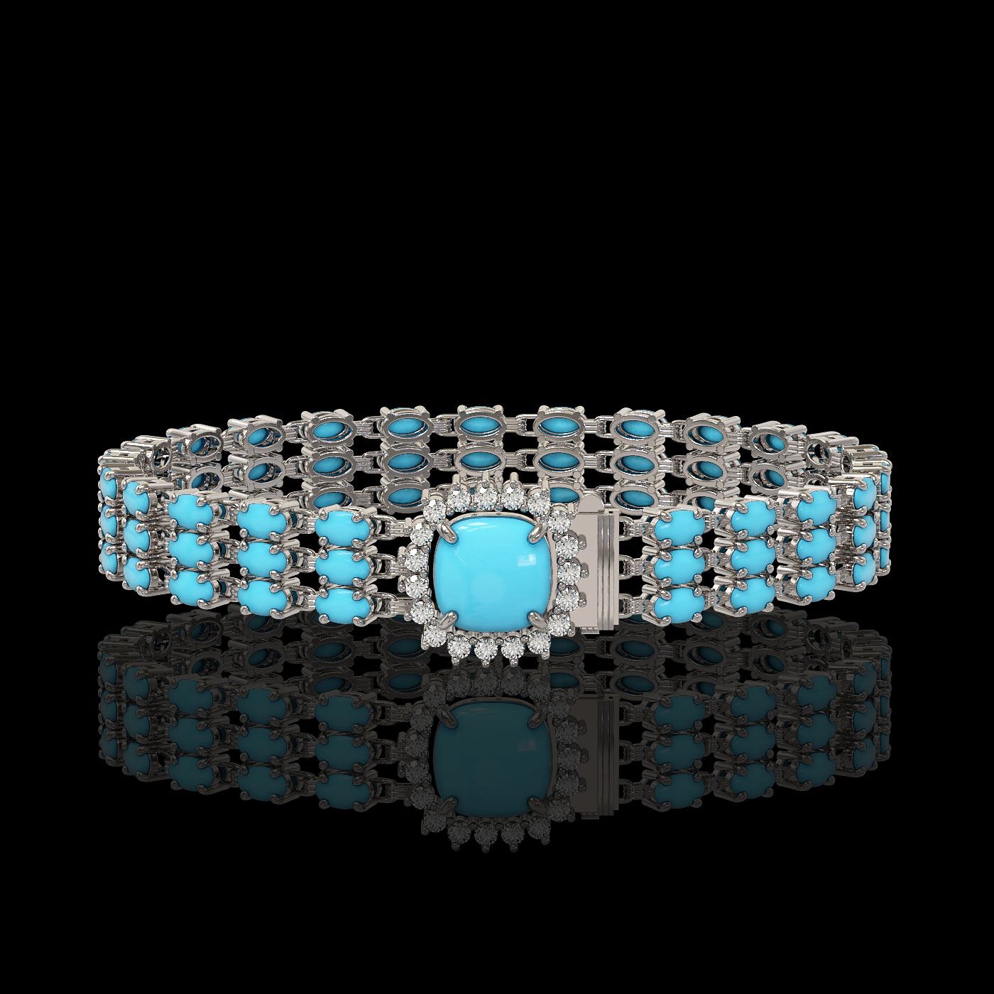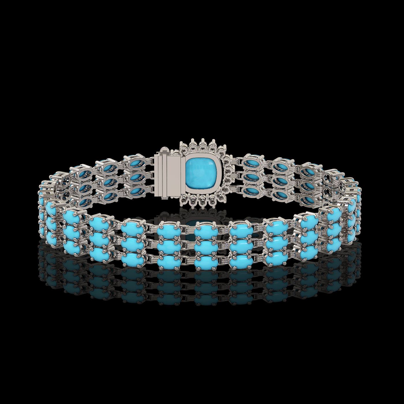 REF-281K8Y - SKU: 45929 ---- 22.19 ctw Turquoise & Diamond Bracelet 14K White Gold