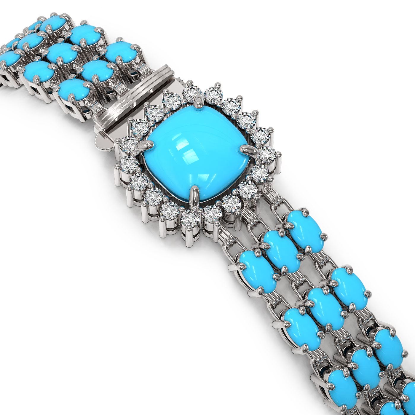 REF-281M8G - SKU: 45929 ---- 22.19 ctw Turquoise & Diamond Bracelet 14K White Gold