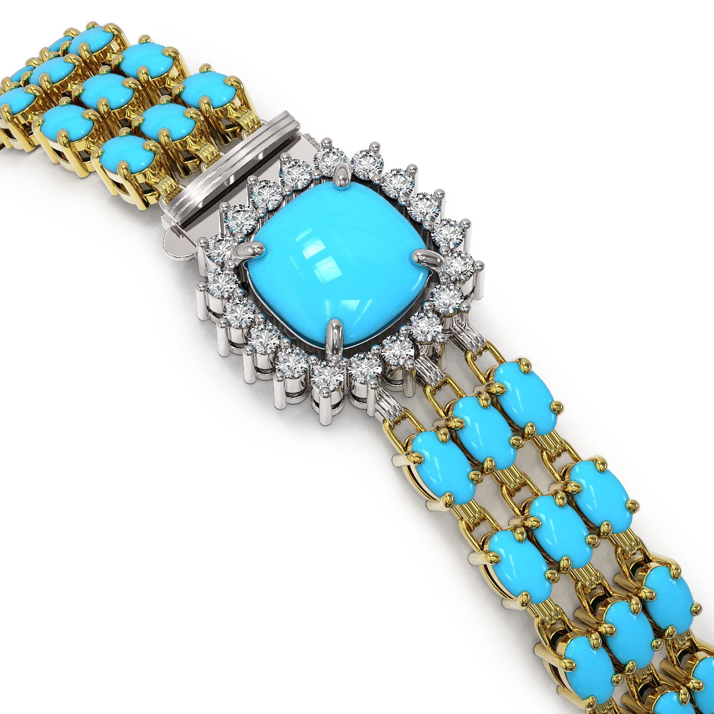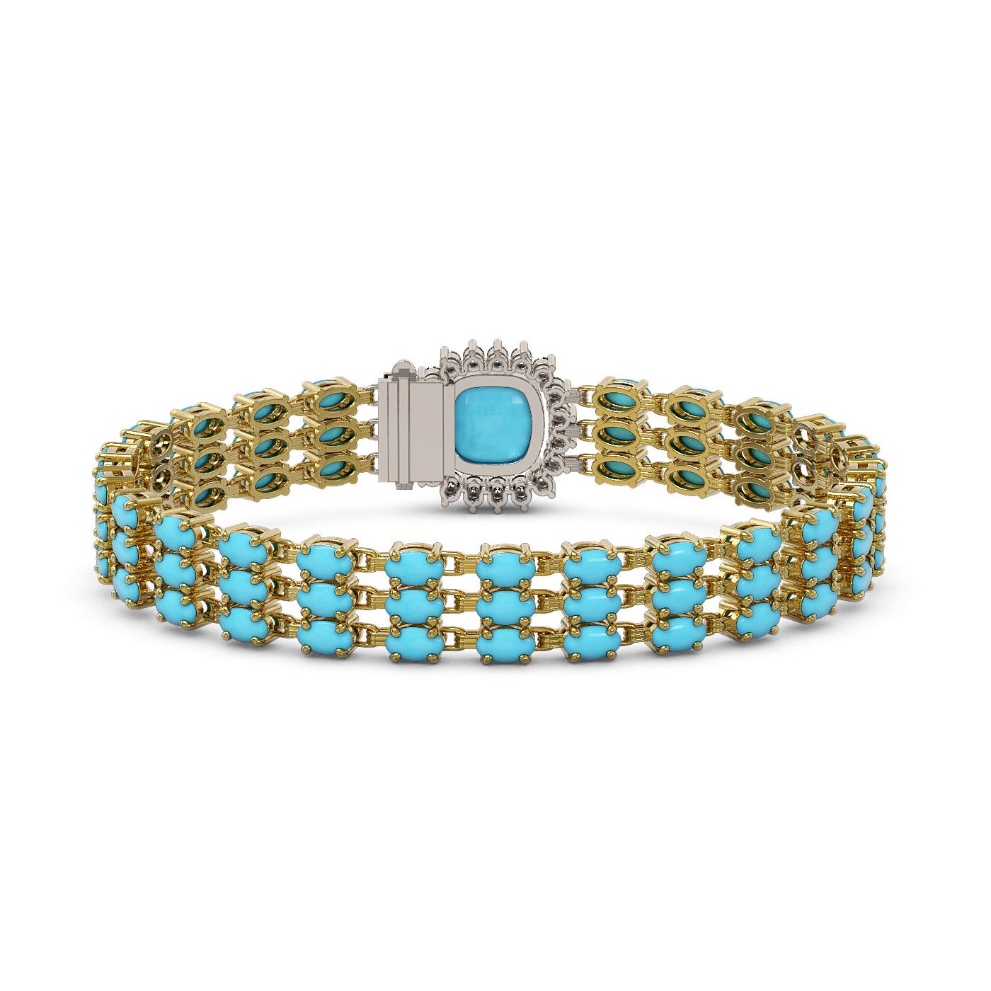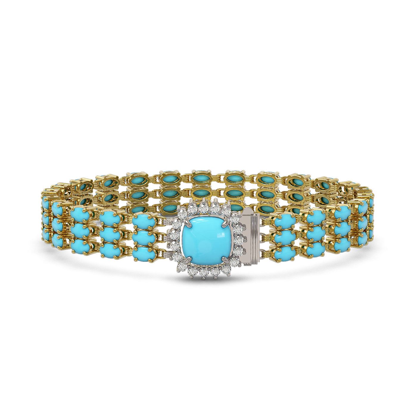 REF-281R8K - SKU: 45931 ---- 22.19 ctw Turquoise & Diamond Bracelet 14K Yellow Gold