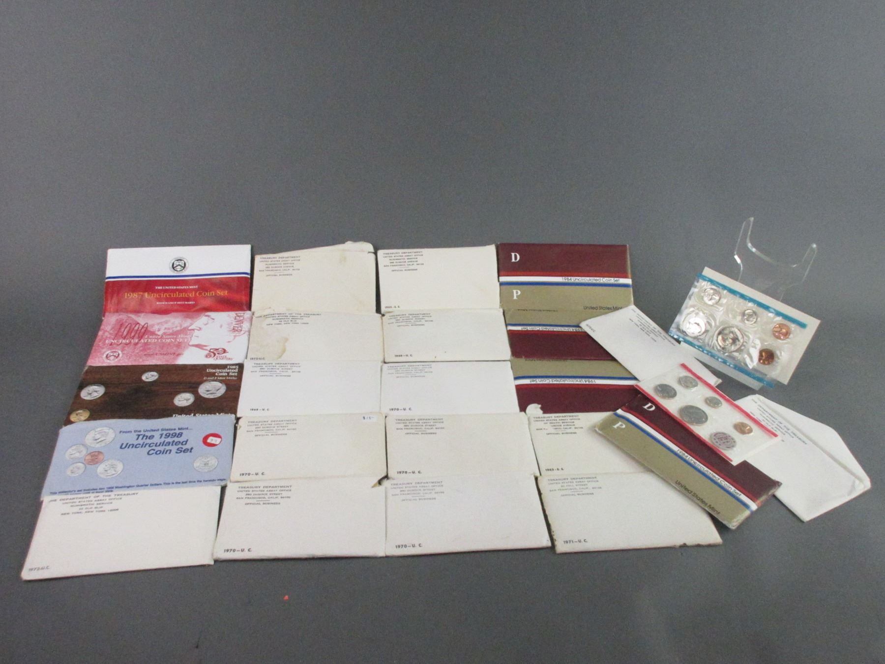 22 1965-1999 Uncirculated Coin Sets- Halves, Quarters, Dimes, Nickles, Pennies, Tokens- Two Packs In