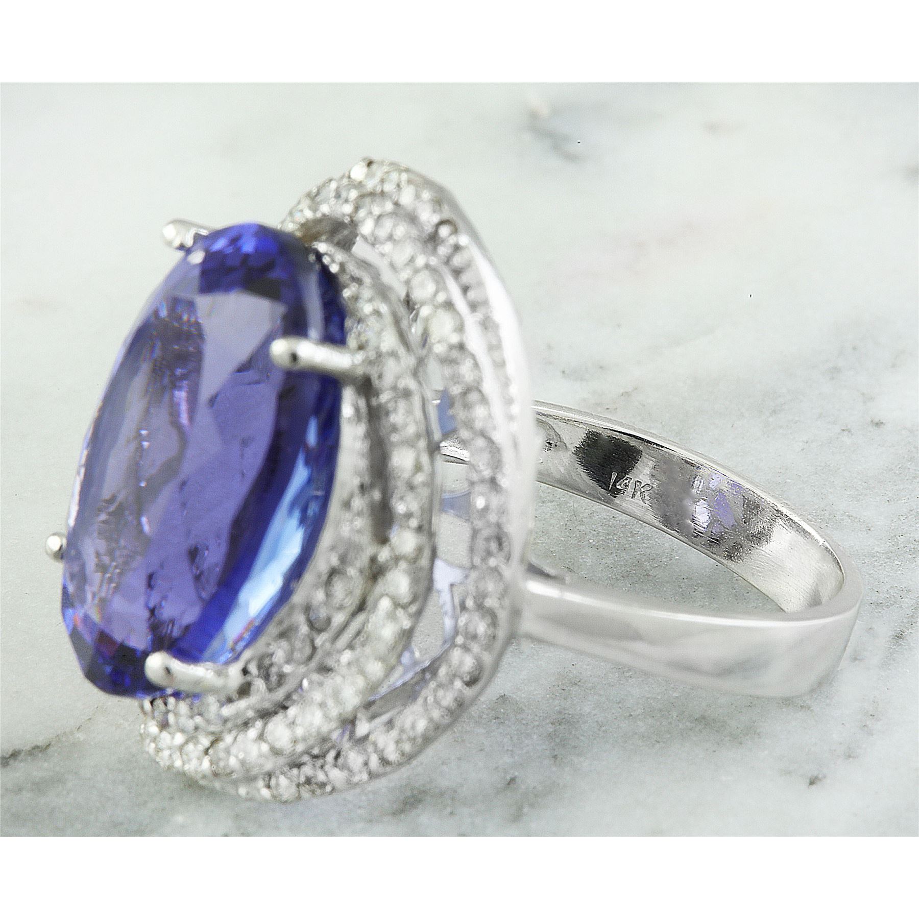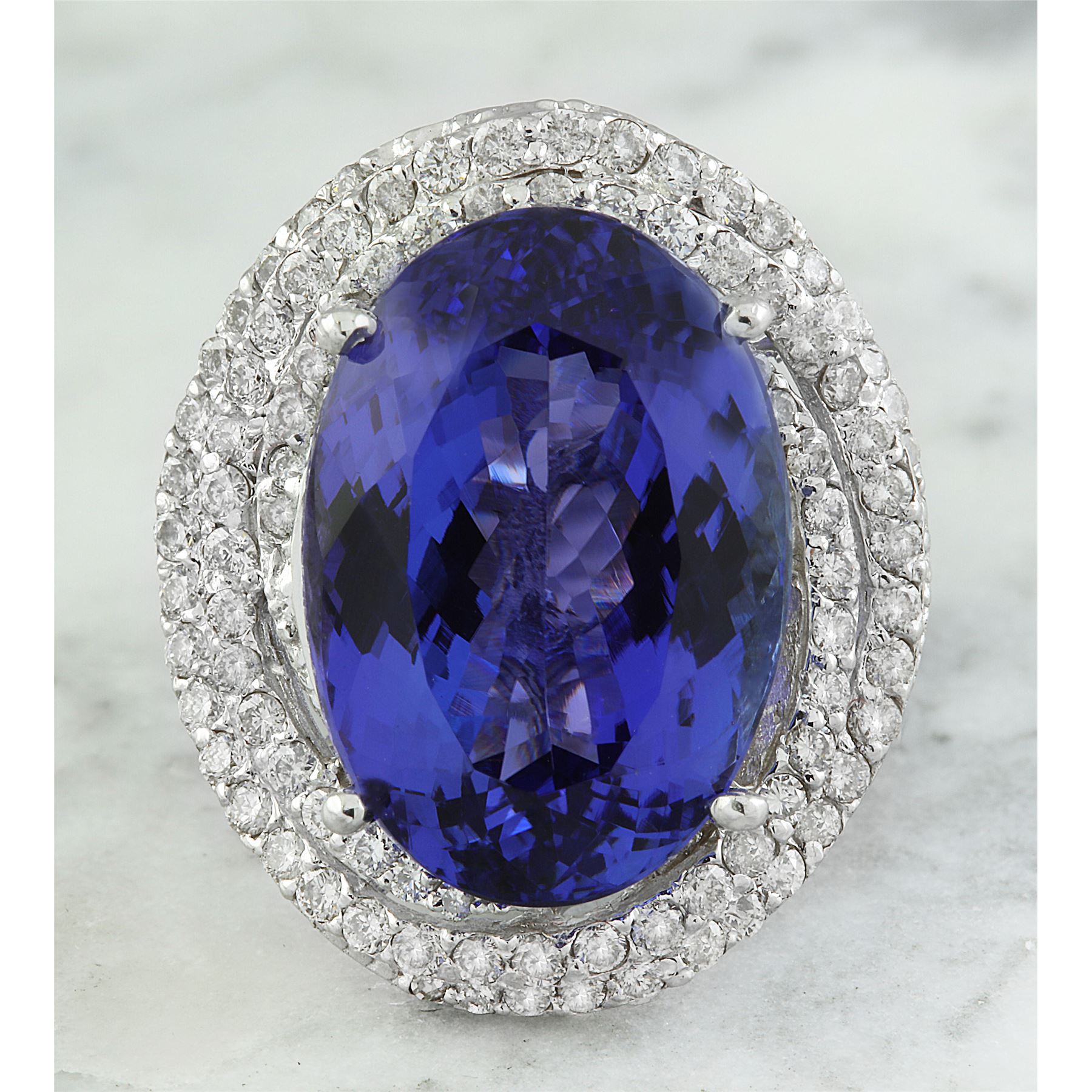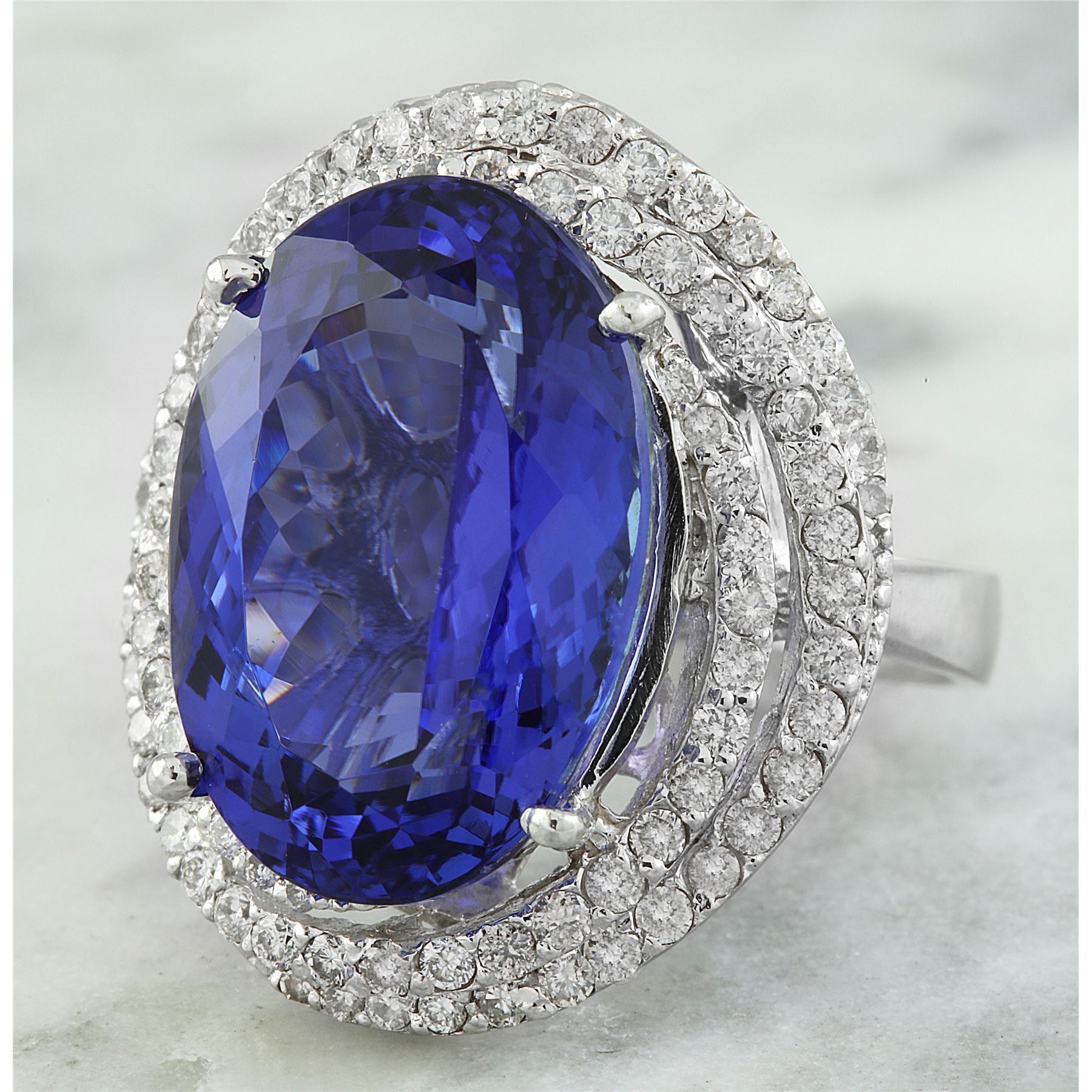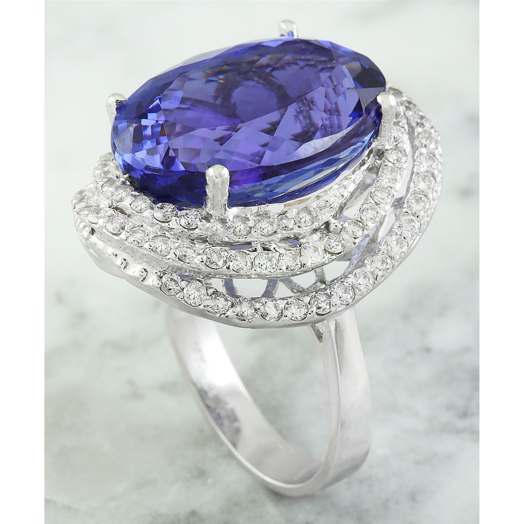 22.22 CTW Tanzanite 14K White Gold Diamond Ring