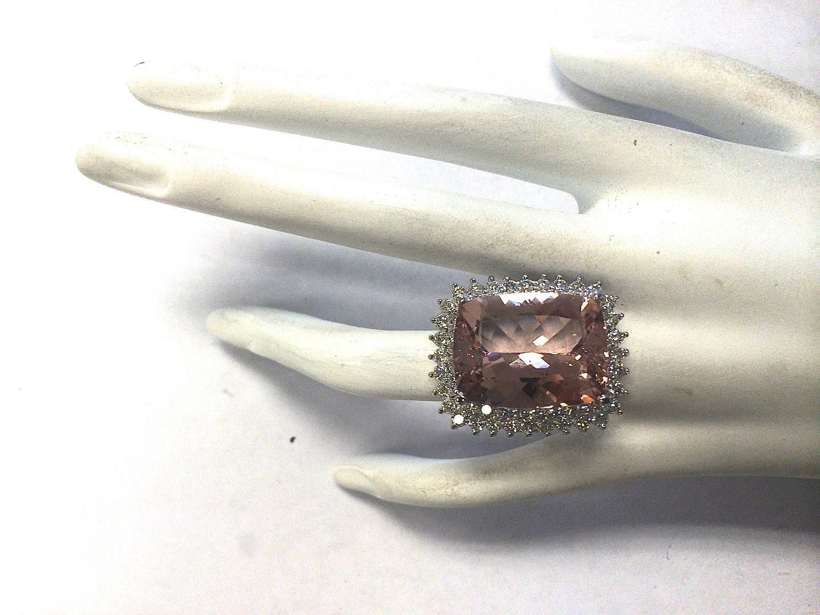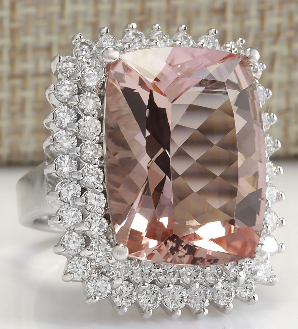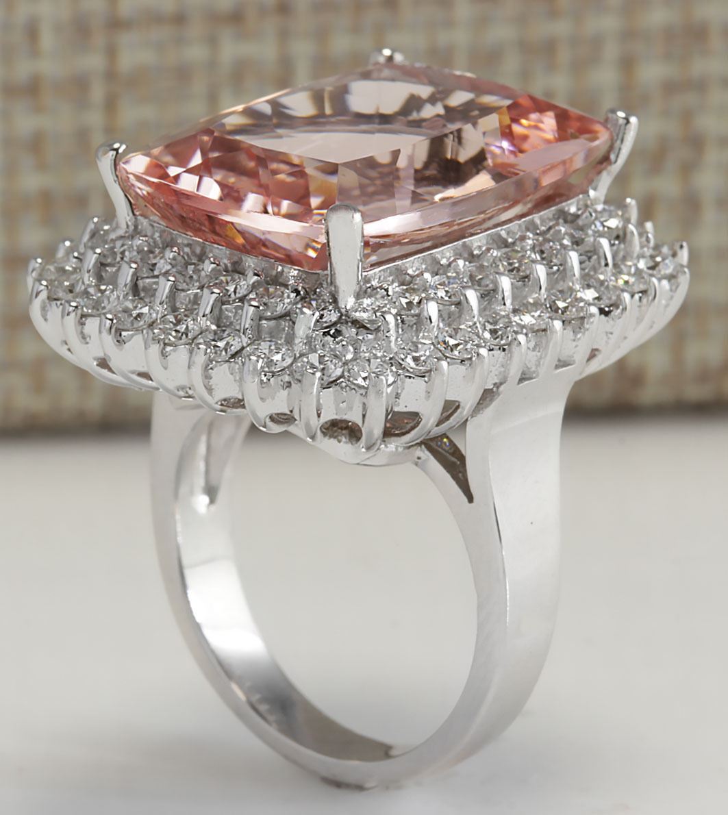22.24 CTW Natural Peach Morganite And Diamond Ring In 18K Solid White Gold