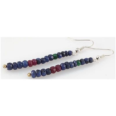 Single Line Natural Multi-Color Micro Faceted Beads Gemstone Silver Hook Earring 4.5-5.5mm; 2inch long