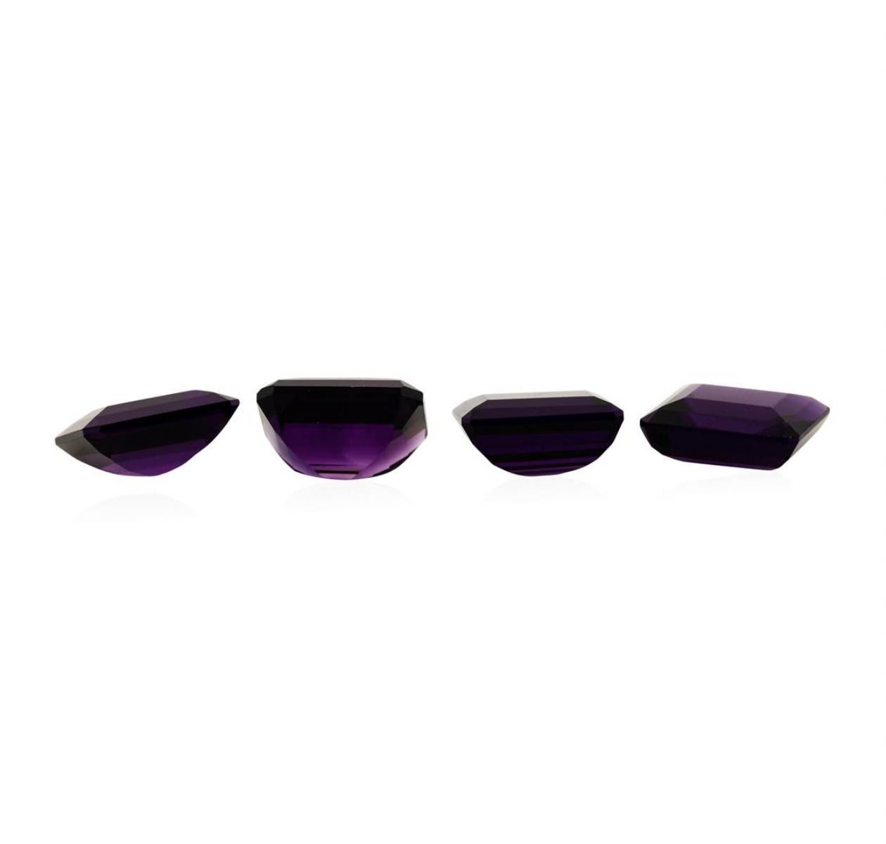 One natural emerald cut amethyst parcel of four with an exact weight of 22.45ctw., clarity is eye clean, purple, medium dark. Gemological Appraisals Services estimates the retail value at $763.3 GAS Appraised.