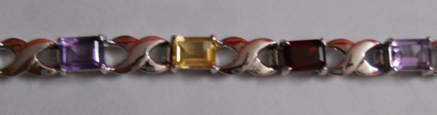 22.480g Bracelet of Amethyst,Citrine and Garnet Sterling Silver