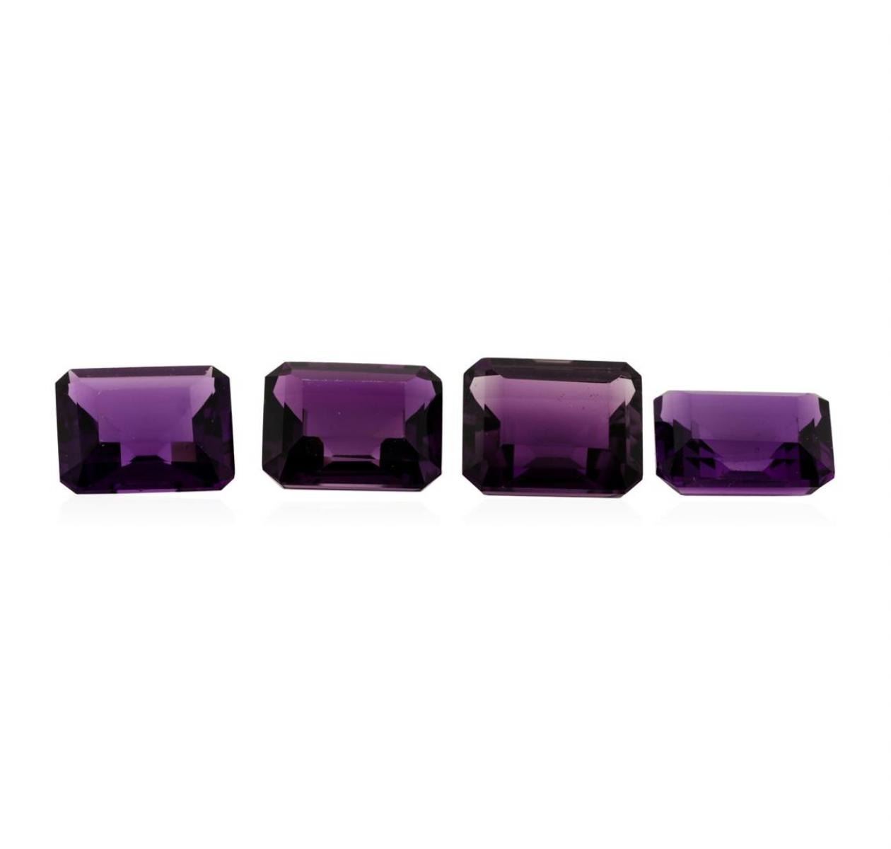 One natural emerald cut amethyst parcel of four with an exact weight of 22.50ctw., clarity is eye clean, purple, medium dark to medium. Gemological Appraisals Services estimates the retail value at $765 GAS Appraised.