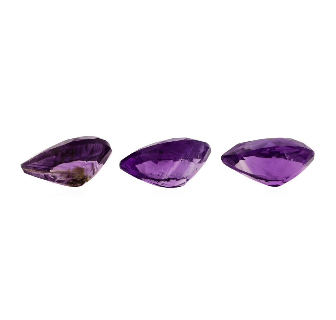 One natural pear cut amethyst parcel of three with an exact weight of 22.51ctw., clarity is slightly included, purple, medium to medium light. Gemological Appraisals Services estimates the retail value at $675.3 GAS Appraised.