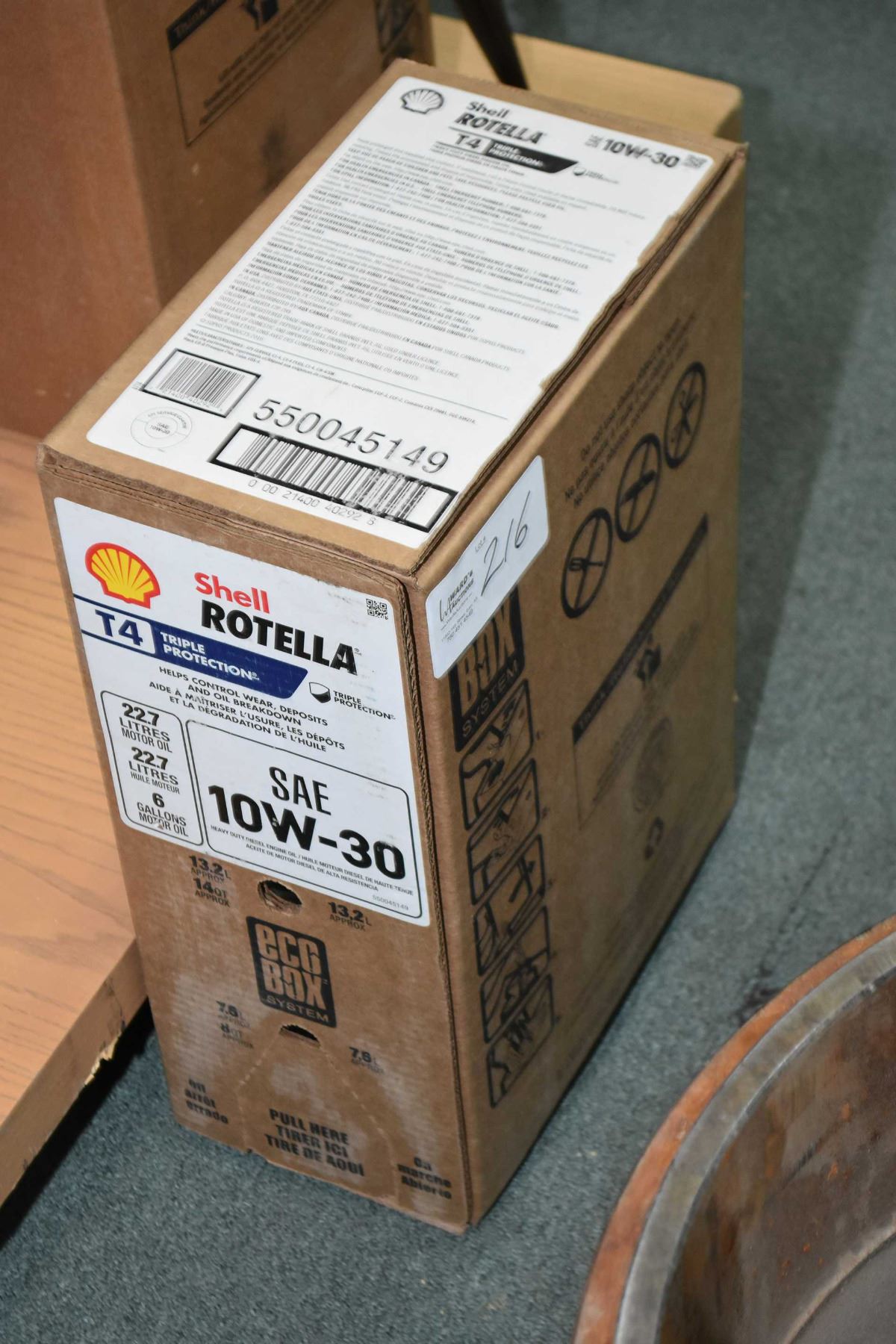 22.7 ltrs. of Shell Rotella 10W-30 motor oil, T4 triple protection- AUCTION HOUSE WILL NOT PROVIDE SHIPPING FOR THIS ITEM. BUYER MAY ARRANGE THEIR OWN COURIER.