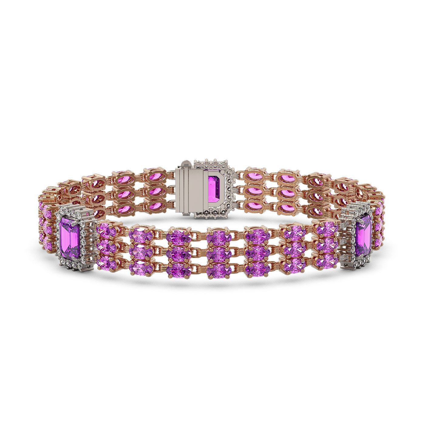 REF-327N3F - SKU: 45405 ---- 22.77 ctw Amethyst & Diamond Bracelet 14K Rose Gold