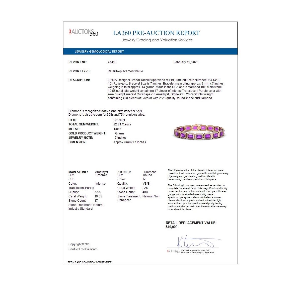REF-345M5G - SKU: 41418 ---- 22.81 ctw Amethyst & Diamond Micro Pave Halo Bracelet 10k Rose Gold
