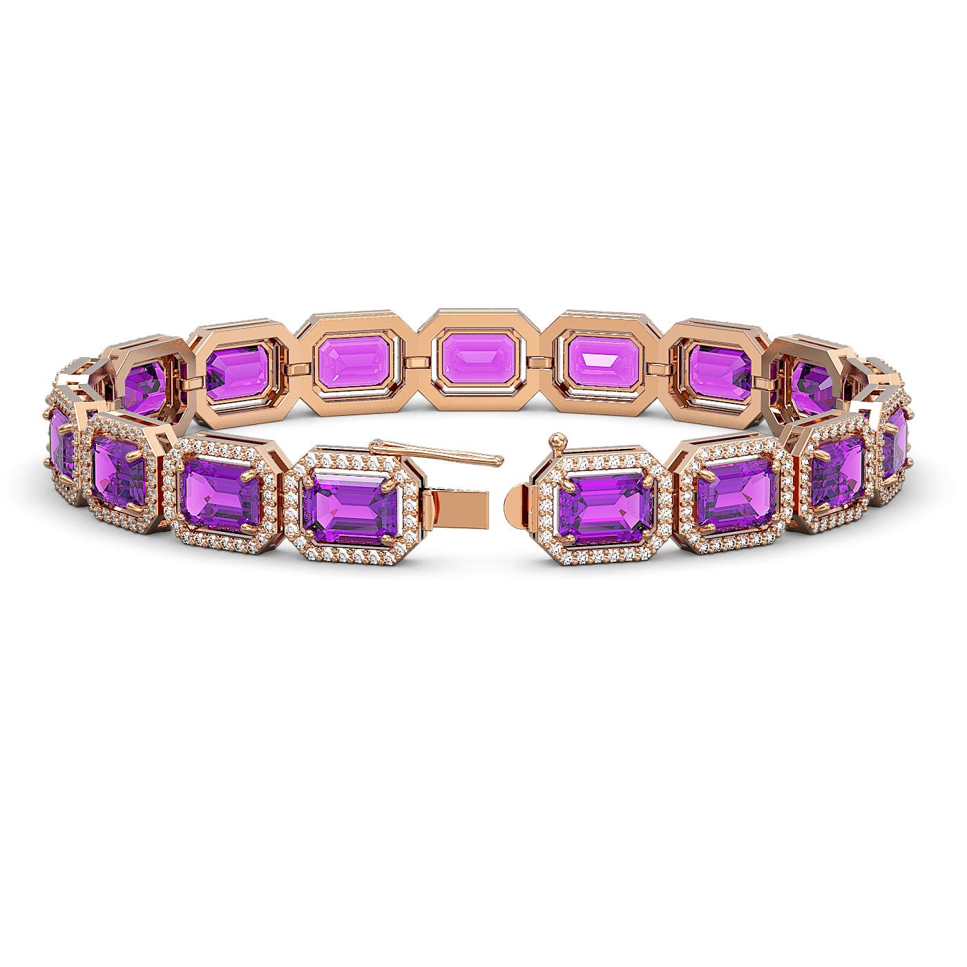 SKU: 41418 ---- 22.81 ctw Amethyst & Diamond Micro Pave Halo Bracelet 10k Rose Gold