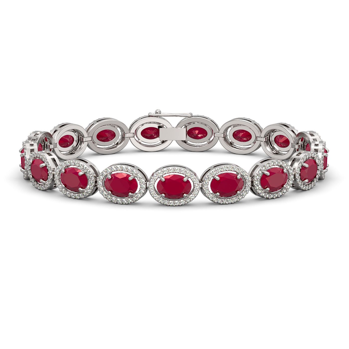 REF-291X5T -40604 ---- 22.89 CTW Ruby & Diamond Halo Bracelet 10K White Gold ---- Luxury Designer Brand Bracelet Appraised at $16,050 Certificate Number US40604 10k White gold, Bracelet Size is 7 Inches, Bracelet measuring approx. 9 mm x 7 Inches, weighing in total approx. 14 grams. Made in the USA and is stamped 10k, Main stone 19.8087804878049 carat total weight containing 17 pieces of Mid-Opaque-Deep Red color with AAA quality Oval shape cut Ruby , Stone #2 3.08 carat total weight containing 374 pieces of G-H color with VS/SI quality Round shape cut Diamond