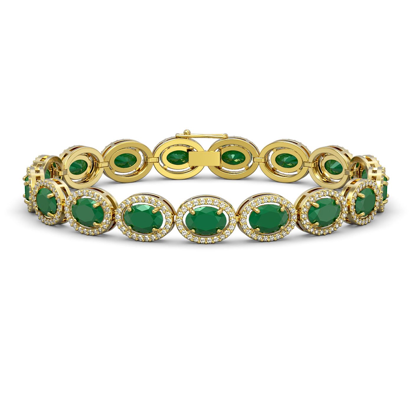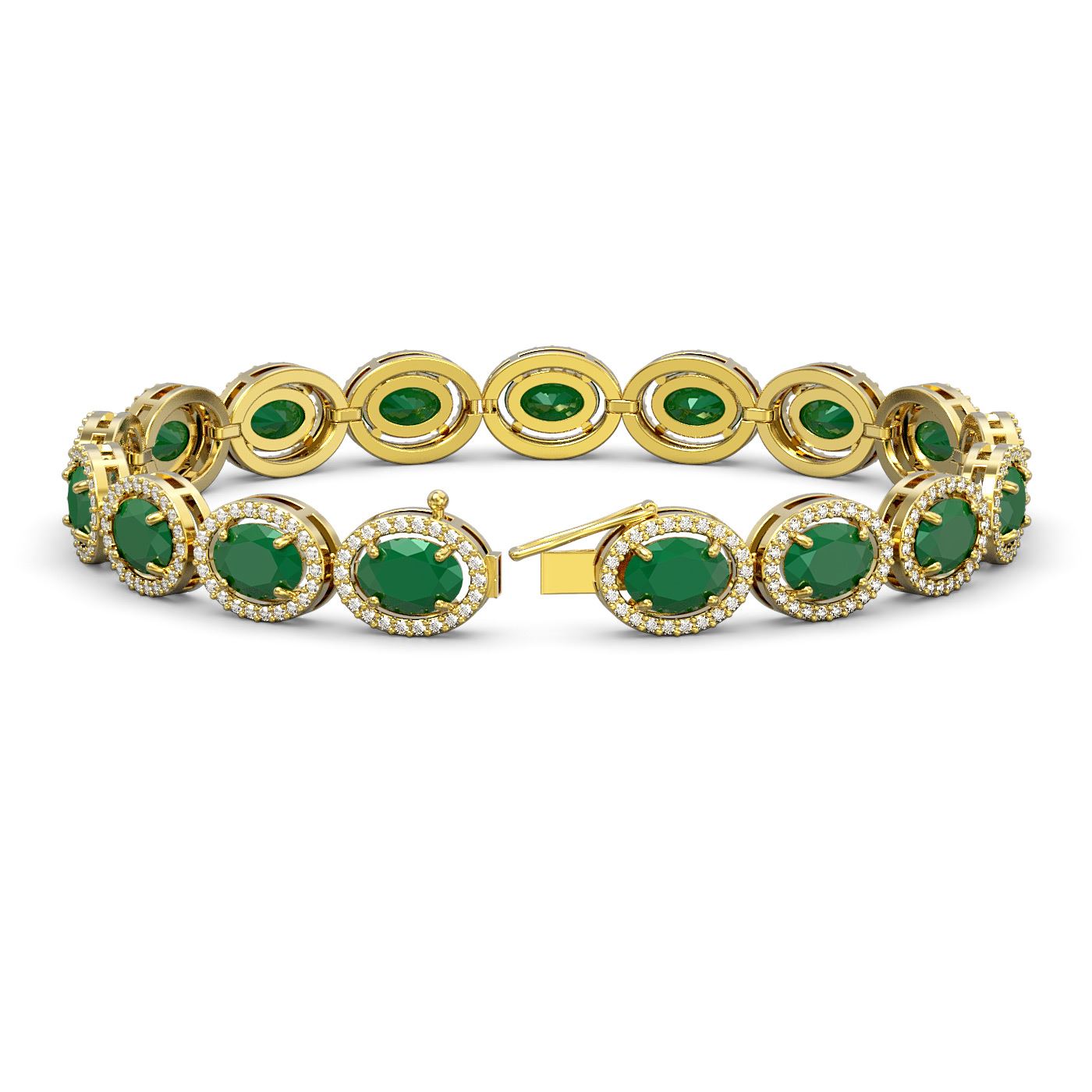 REF-291F5M - SKU: 40603 ---- 22.89 ctw Emerald & Diamond Micro Pave Halo Bracelet 10k Yellow Gold