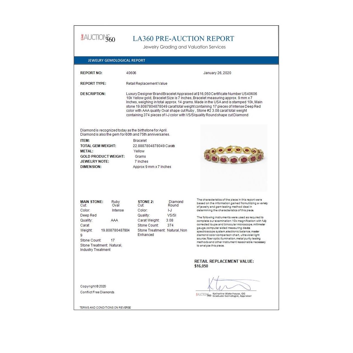 REF-291K5Y - SKU: 40606 ---- 22.89 ctw Ruby & Diamond Micro Pave Halo Bracelet 10k Yellow Gold