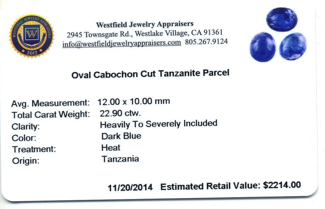 22.9ctw. Oval Cabochon Cut Tanzanite Parcel. Westfield Appraised at $2,214.00.