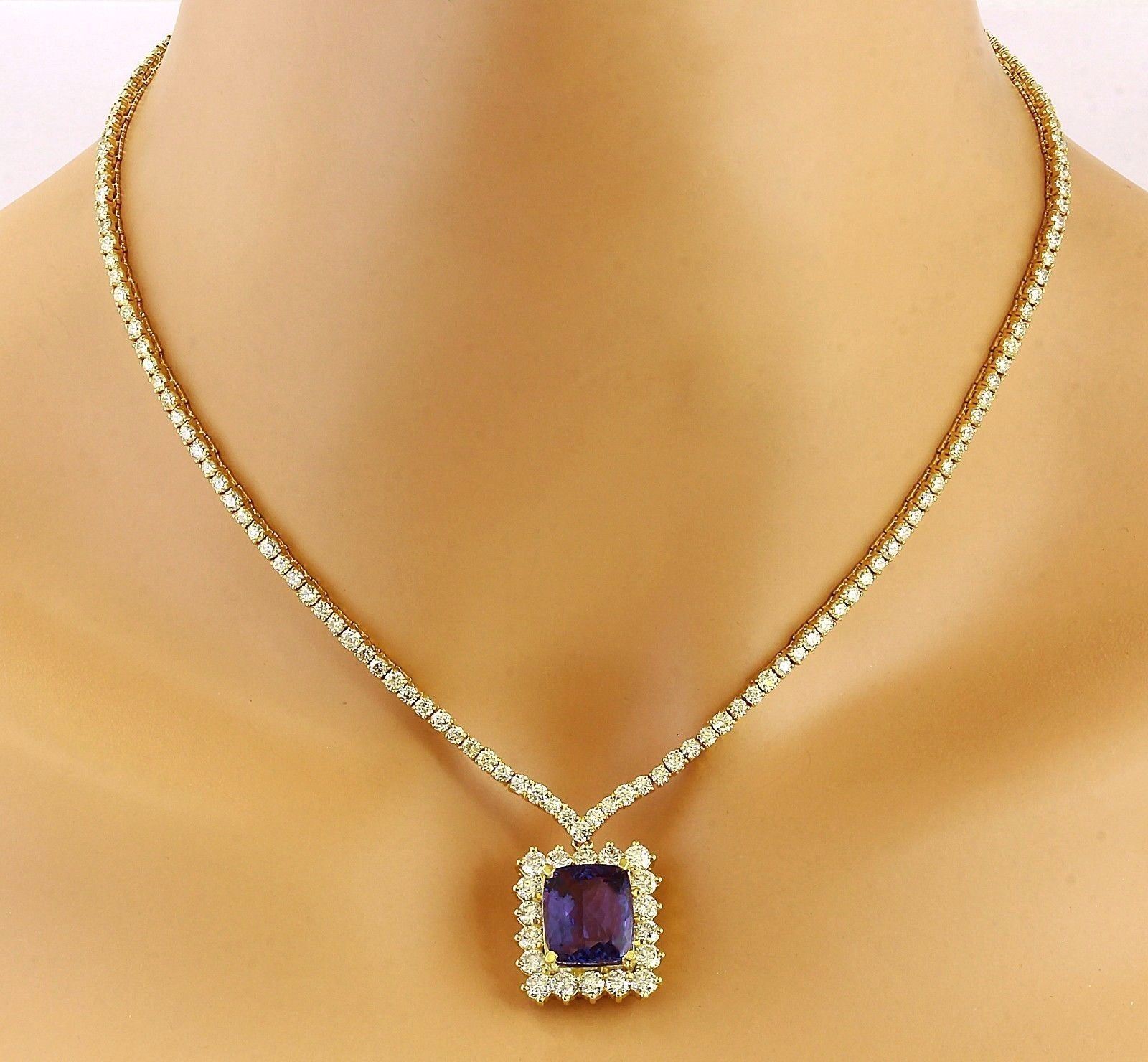 22.92 CTW Natural Tanzanite 18K Solid Yellow Gold Diamond Necklace
