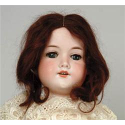 Lot # 3 22" ARMAND MARSEILLE BISQUE SOCKET HEAD DOLL. Blue sleep eyes, open mouth, four teeth with brown mohair wig. Marked "Made in Germany Armand Marseille 390 DRGM 246 A 6-1/2M". CONDITION: BJCB in near excellent condition. Doll has slight flaw on cheek. Wig has not been removed to check for damage. 1-29040 (200-400)