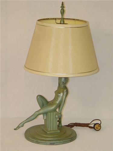 22" ART DECO FRANKART STYLE LAMP W/ RECLINING NUDE LADY-MARKED PAT. PEND ART NY ON BACK - OLD PAINT, LOSSES & IMPERFECTIONS