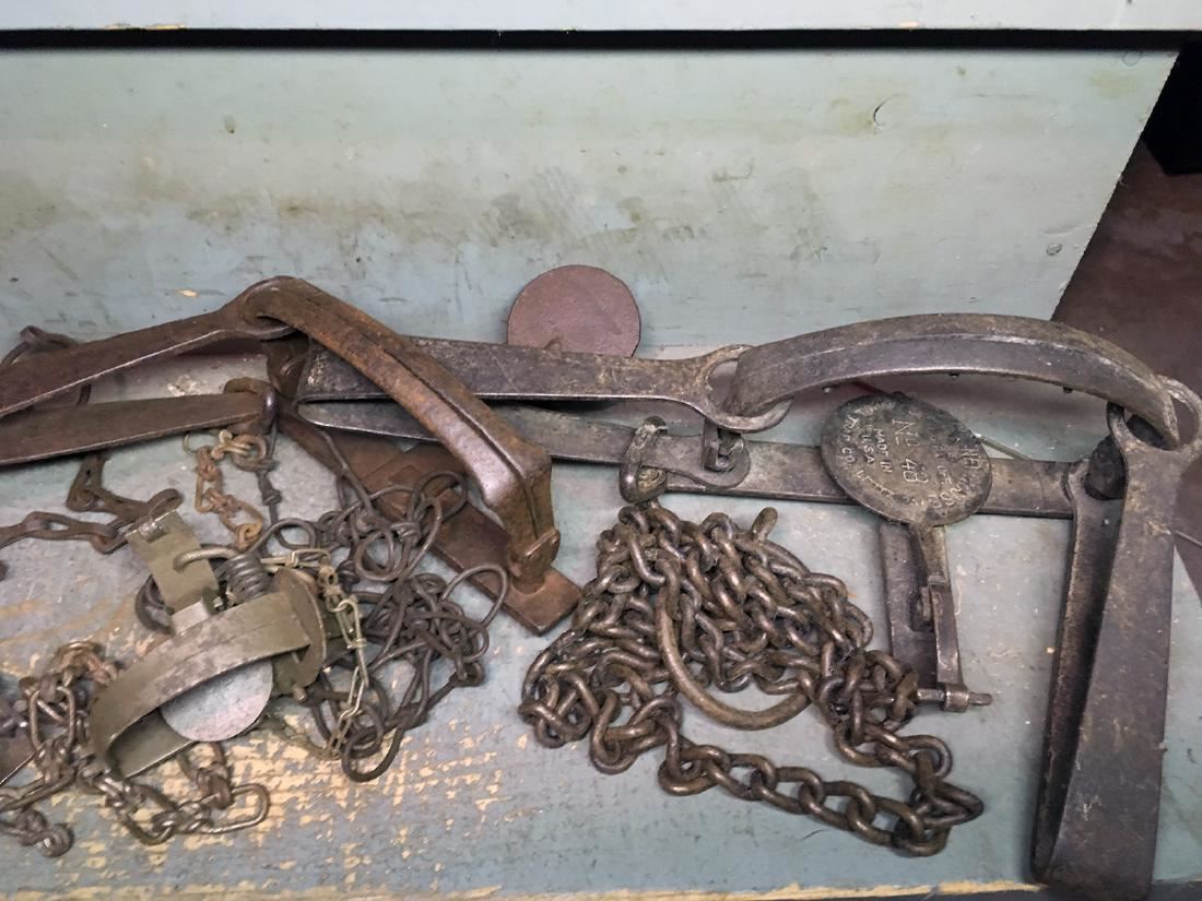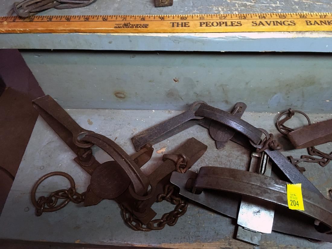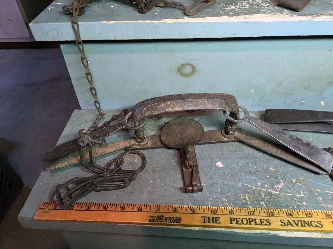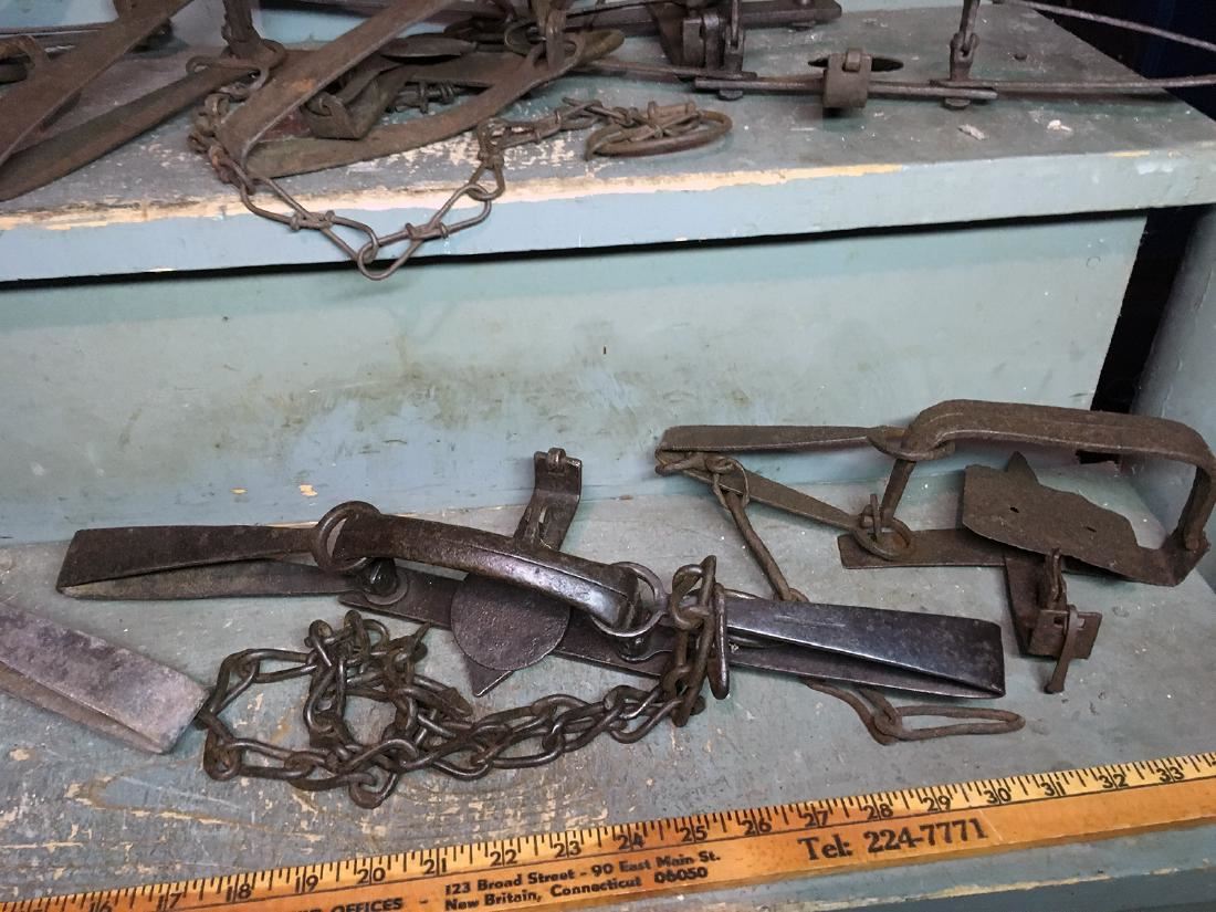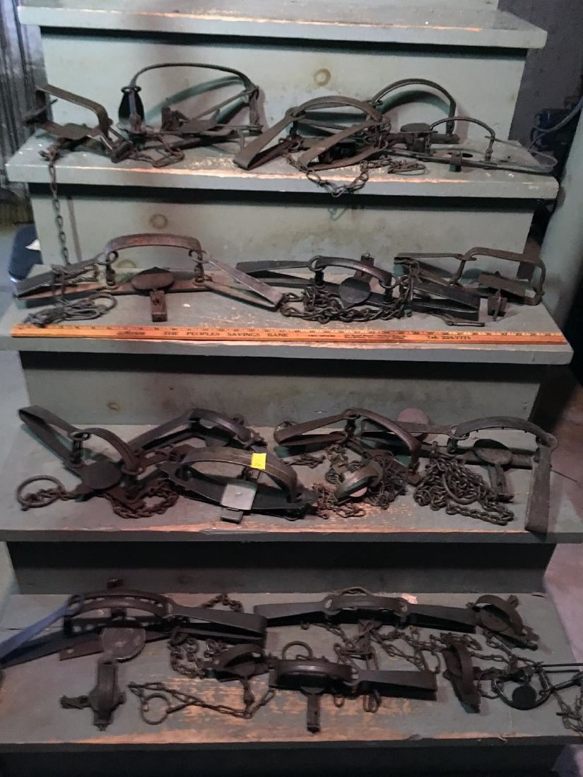 Approx. 22 antique steel traps, medum and small sizes including Newhouse and Victor traps. Well cared for and oiled, part of a lifetime collection (RL).