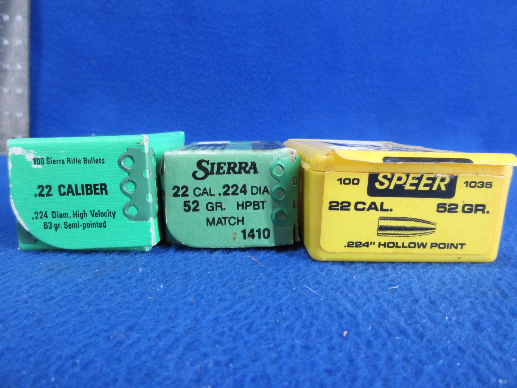 22 Cal. .224" Sierra and Speer Bullets - Box of 100 (63gr Sierra), Box of 38 (52gr Sierra), Box of 59 (52gr Speer)