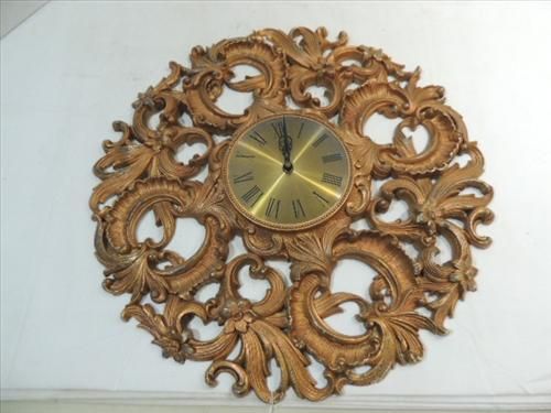 22"D VINTAGE COMPOSIT ORNATE FLORAL WALL CLOCK. AS SHOWN. VIEW PICTURE FOR DETAIL.