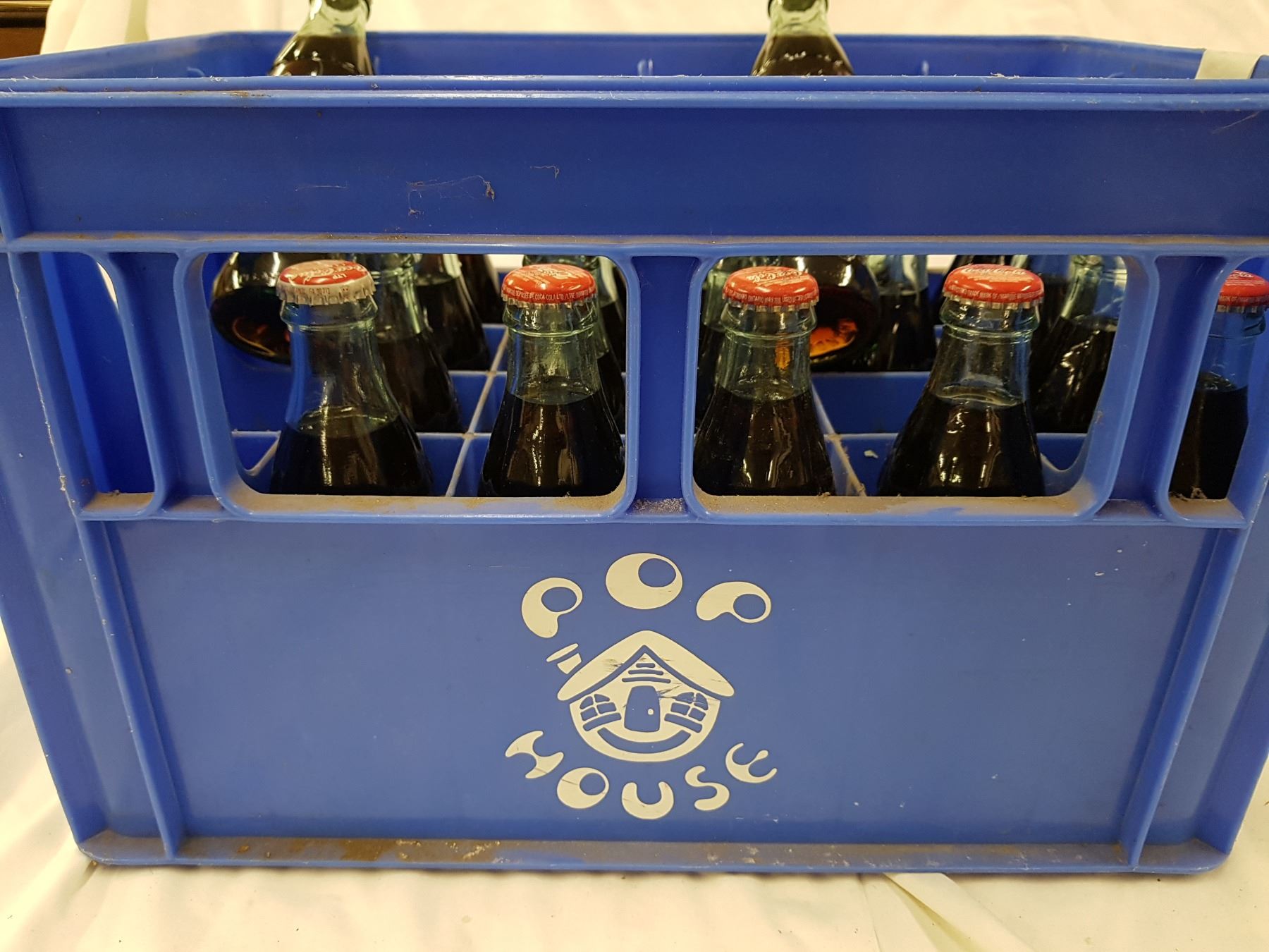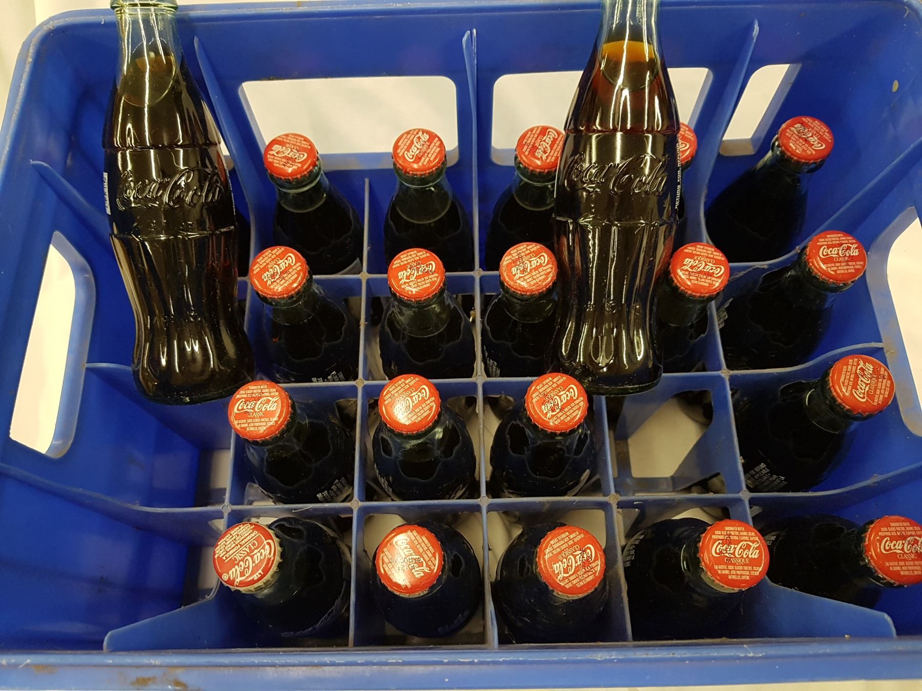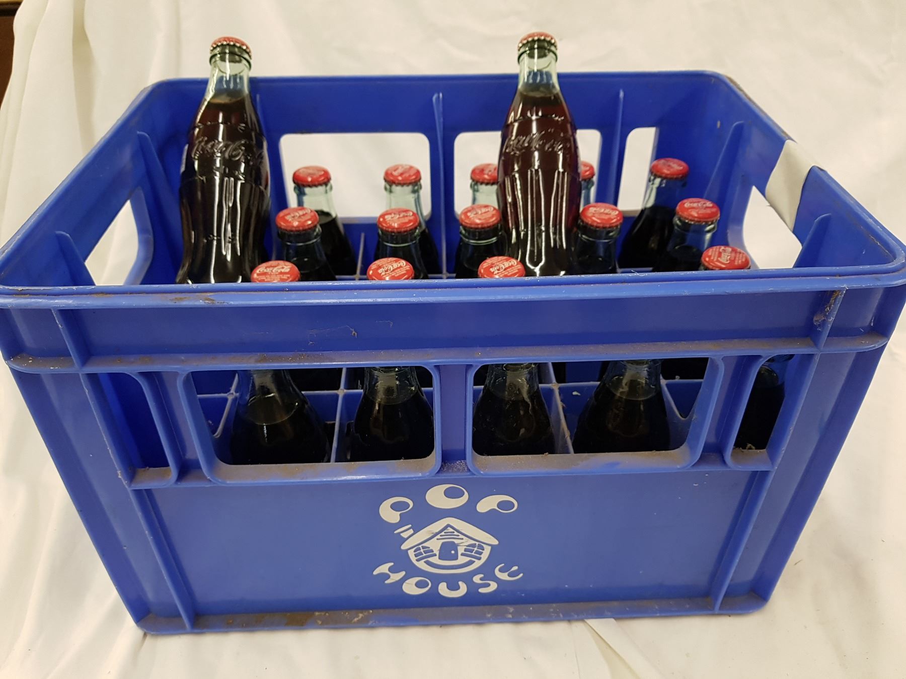 22 FULL COCA-COLA BOTTLES INSIDE POP HOUSE CRATE