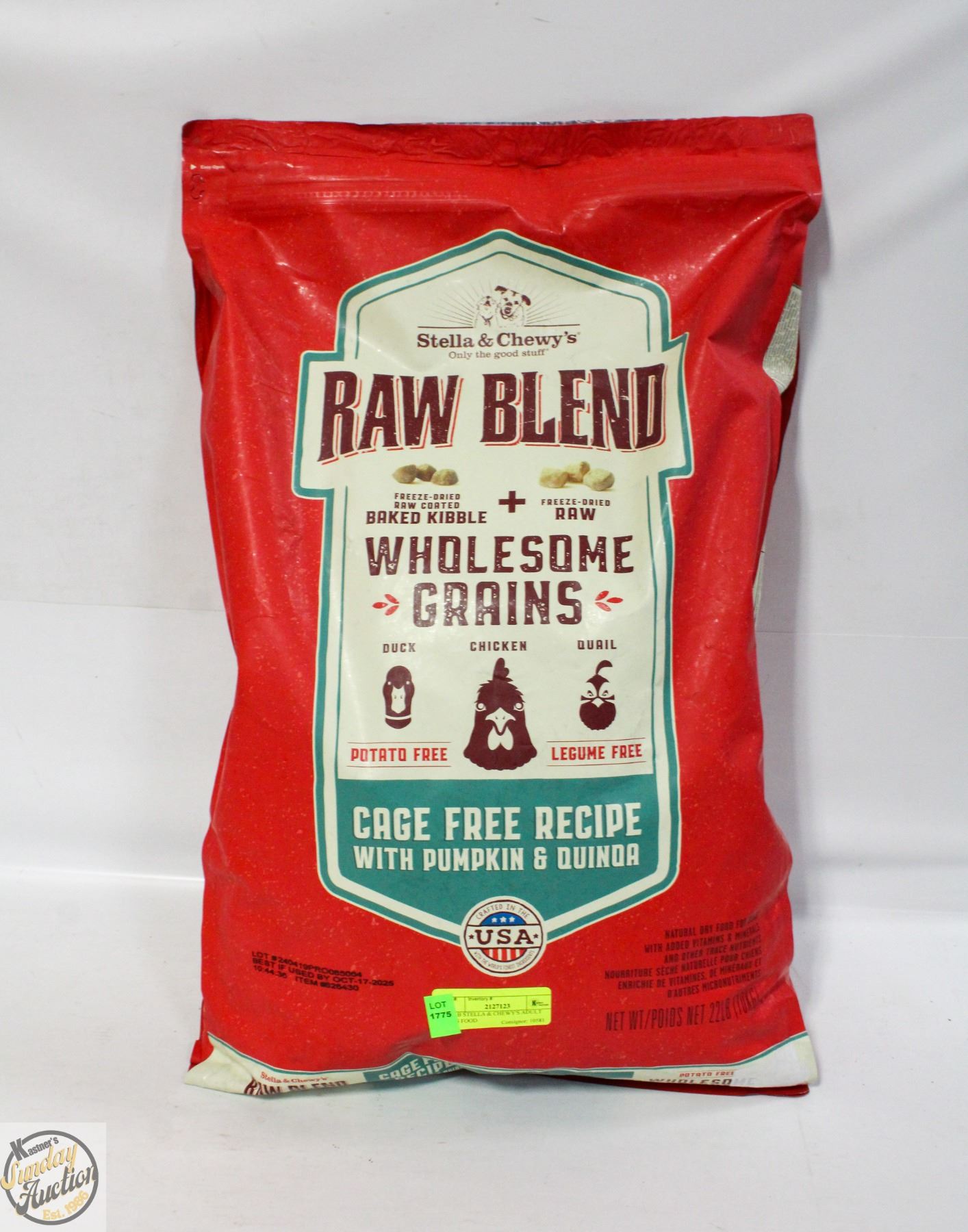 RAW BLEND WHOLESOME GRAIN CHICKEN PUMPKIN QUINOA- BB OCT 17 2025 *NOTE SMALL TEAR ON BACK- RETAIL $150 **ALL ITEMS MUST BE REMOVED BY 5PM SATURDAY, NOVEMBER 8th 2025. ALL REMAINING ITEMS WILL BE SUBJECT TO A $6.00 PER DAY STORAGE CHARGE. ANY ITEMS REMAINING AFTER MONDAY, NOVEMBER 24TH 2025 WILL BE CONSIDERED FORFEITED. NO REFUNDS WILL BE ISSUED FOR FORFEITED ITEMS. TO SCHEDULE A PICK UP APPOINTMENT CLICK HERE