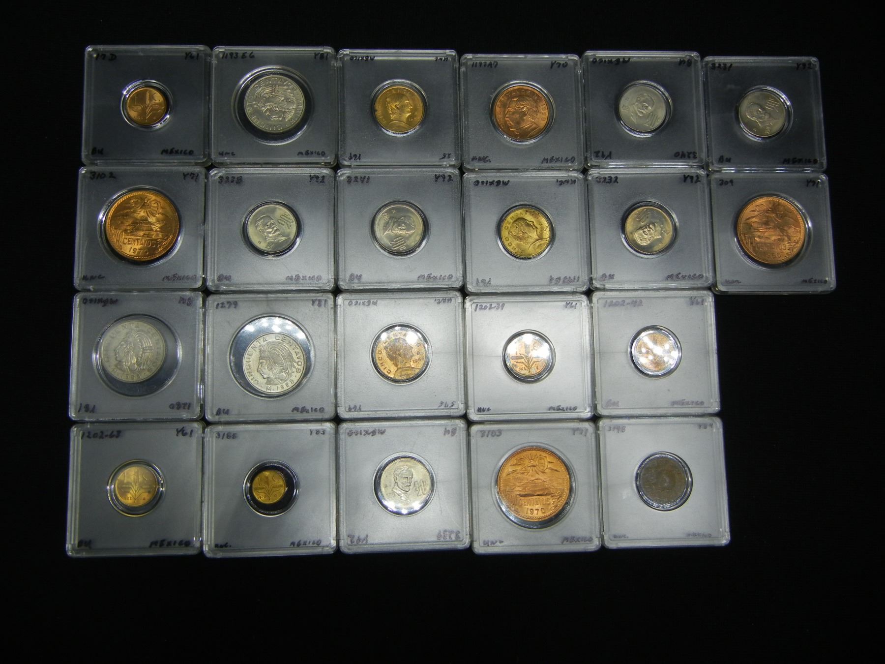 22 Mexico Coins.  All UNC.