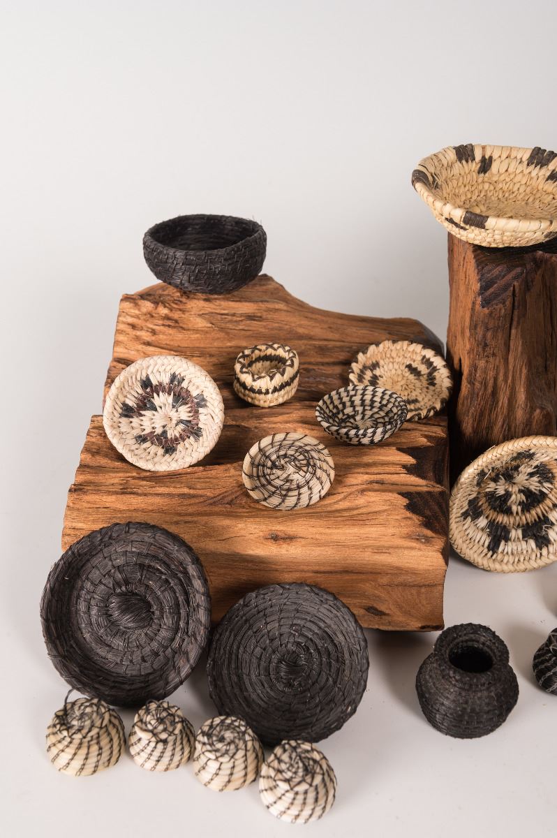 22 Miniature Baskets. Constructed of woven horsehair and basketry materials. Includes Navajo, Pima, California baskets.
