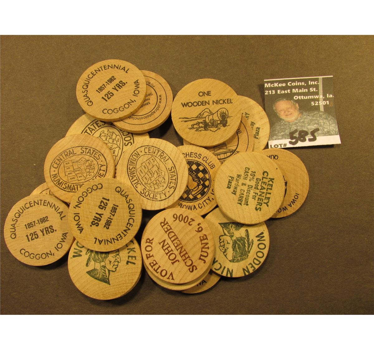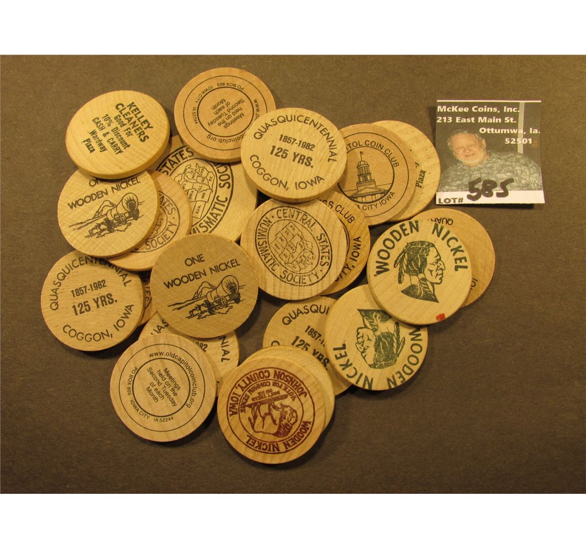 (22) Mixed Wooden Nickels. Mixed dates going back over the last 30 Years.