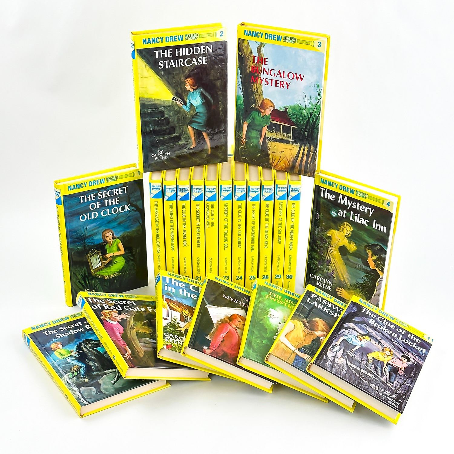 #8036 - NANCY DREW HARDCOVER BOOK LOT - 22 BOOKS IN TOTAL. BOOK NUMBERS ARE: 1, 2, 3, 4, 5, 6, 7, 8, 9, 10, 11, 12, 19, 20, 21, 22, 23, 24, 25, 28, 29 & 30