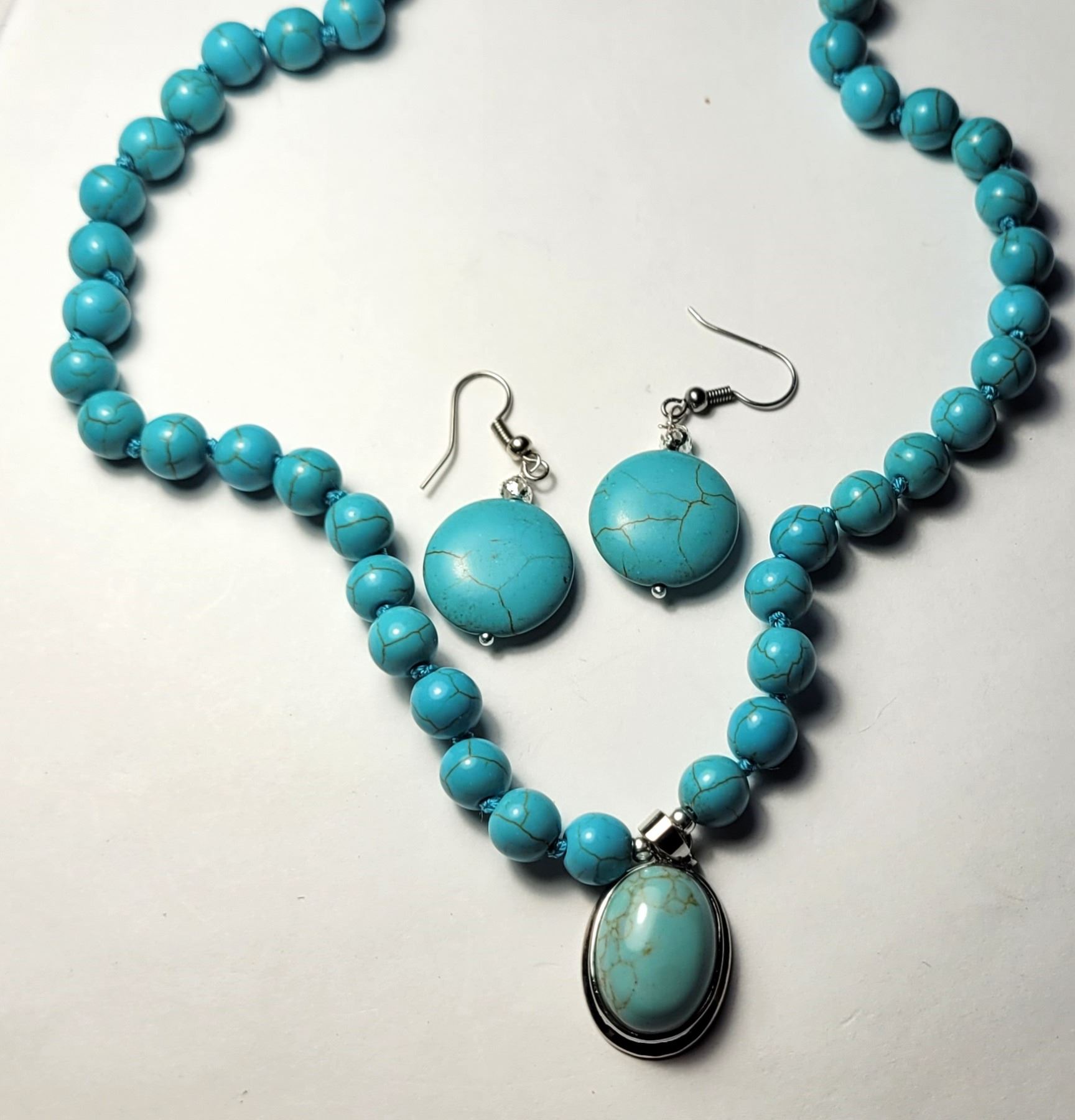 BEADS WITH OVAL DROP AND MATCHING ROUND DROP EARRINGS