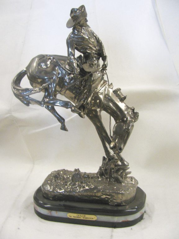 22% REAL SILVER "OUTLAW" FREDERIC REMINGTON SCULPTURE - SIZE 24'' H X 17'' L X 12'' W - LOST WAX CAST WITH 22% REAL SILVER - COMES WITH STORK MATERIALS TECHNOLOGY TEST CERTIFICATE - CHEMICAL ANALYSIS PERFORMED BY ICP PER SOP 17.00, REVISION 2