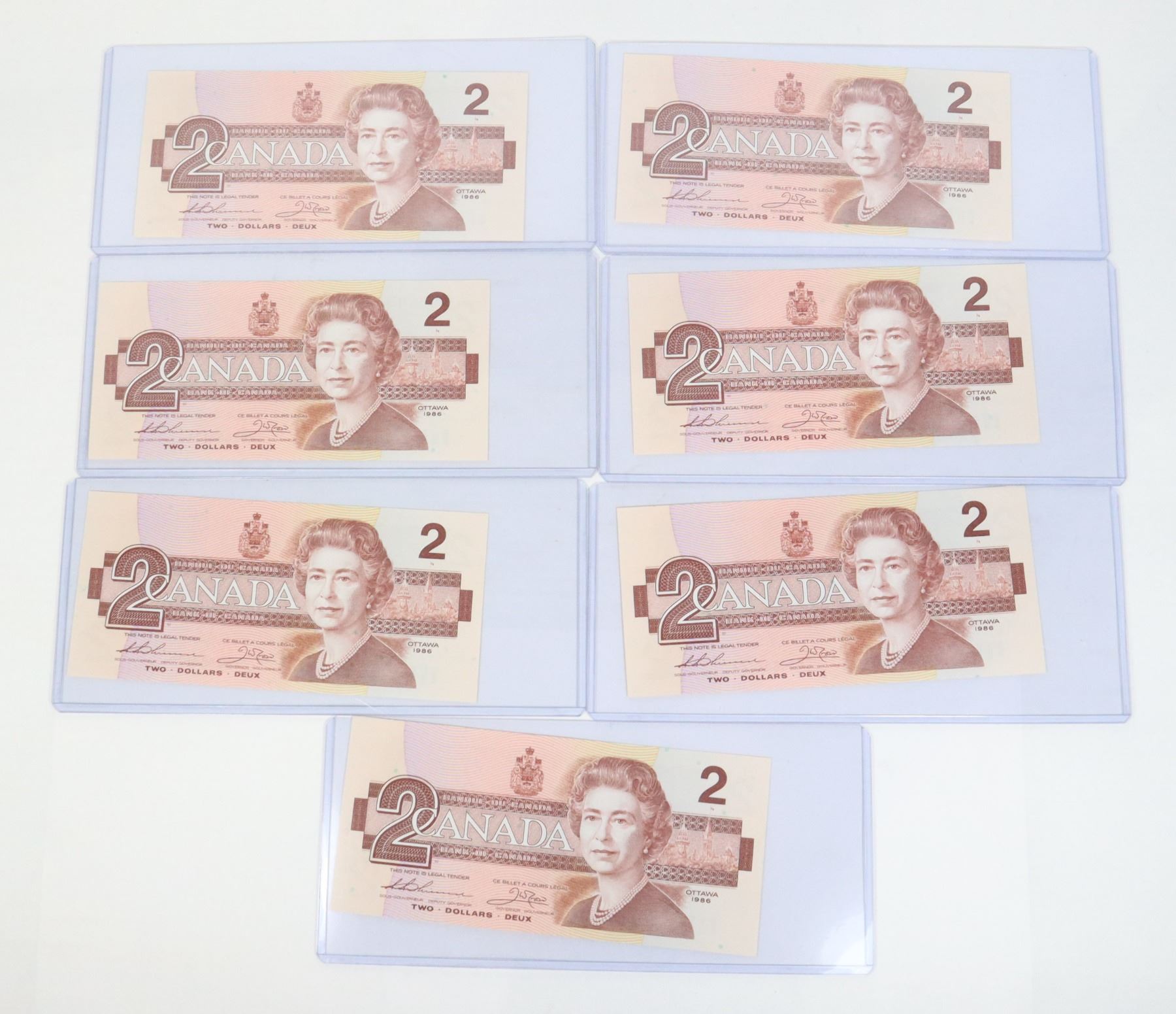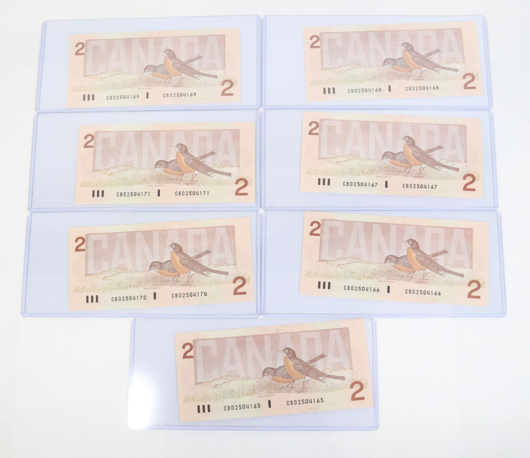 SET OF 7 SEQUENTIAL NOTES CBD2504165 TO CBD2504171 QUEEN ELIZABETH II QEII TWO DOLLAR PAPER MONEY BILL BANKNOTE NOTE