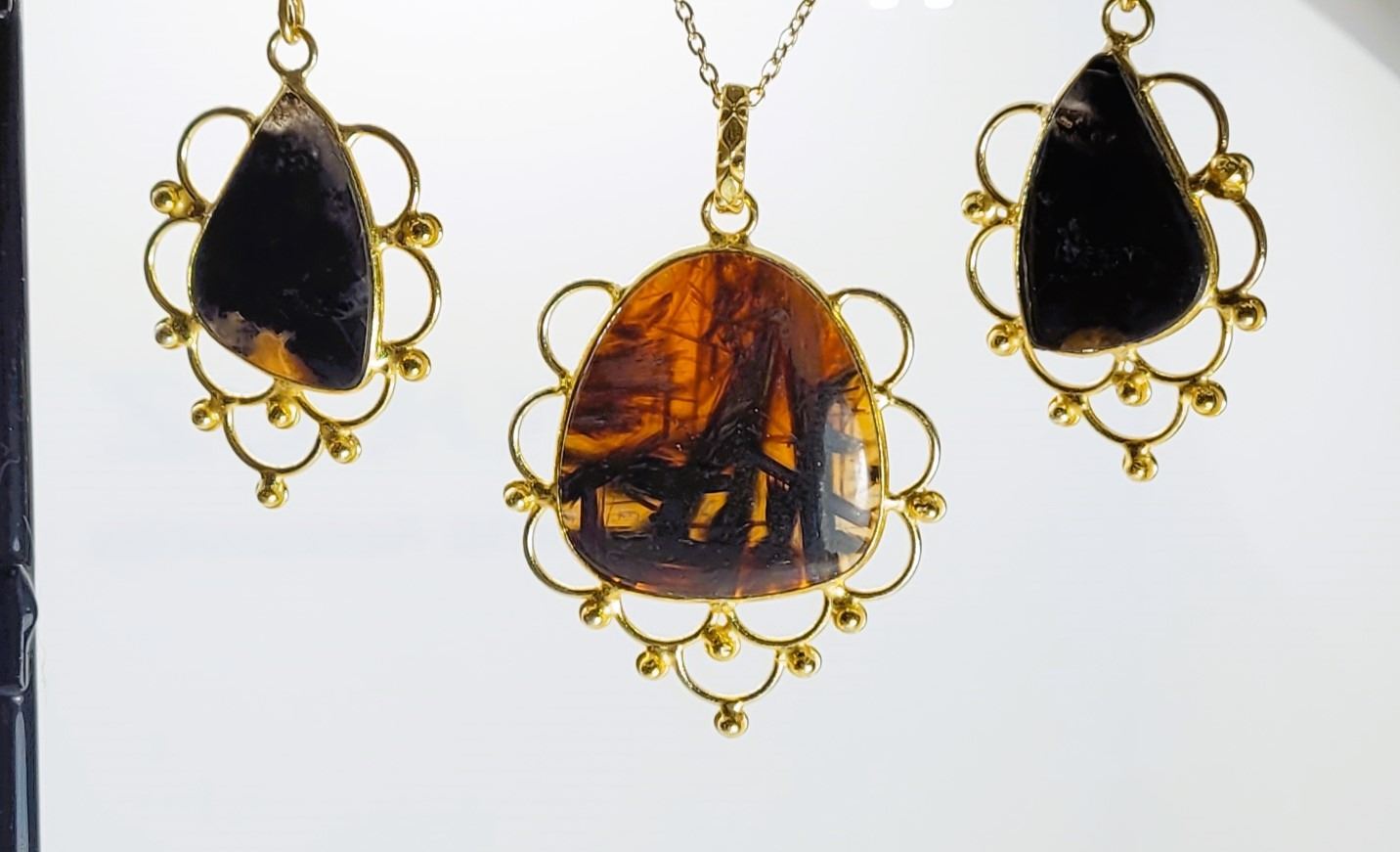 AGATE DROP EARRINGS ON NICKEL FREE FISHHOOK WIRES AND PENDANT ON 18" CHAIN. JEWELRY