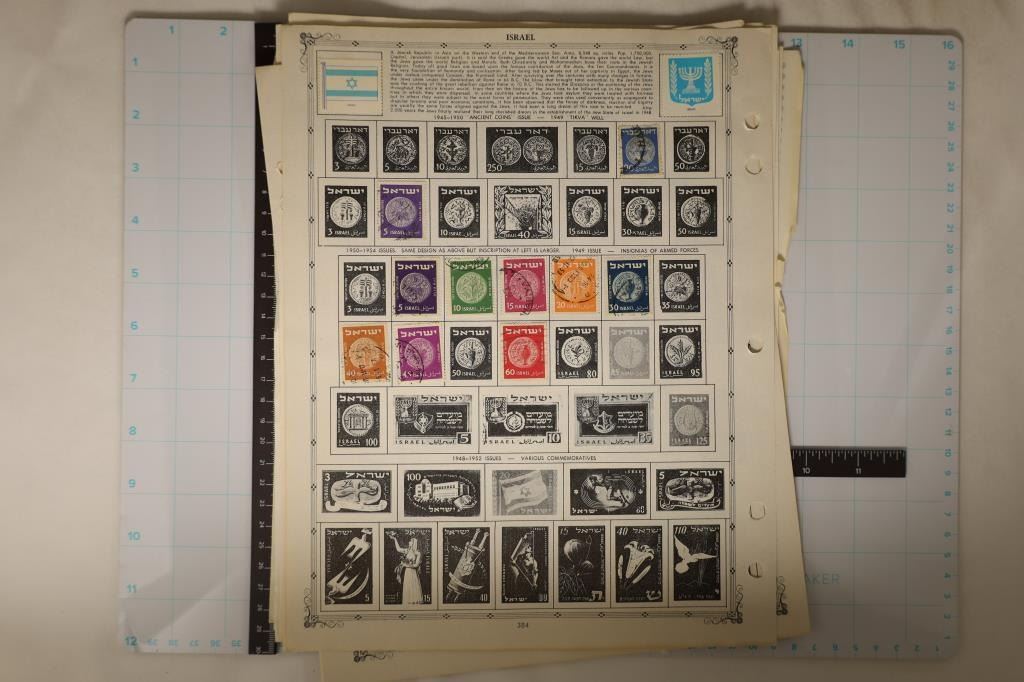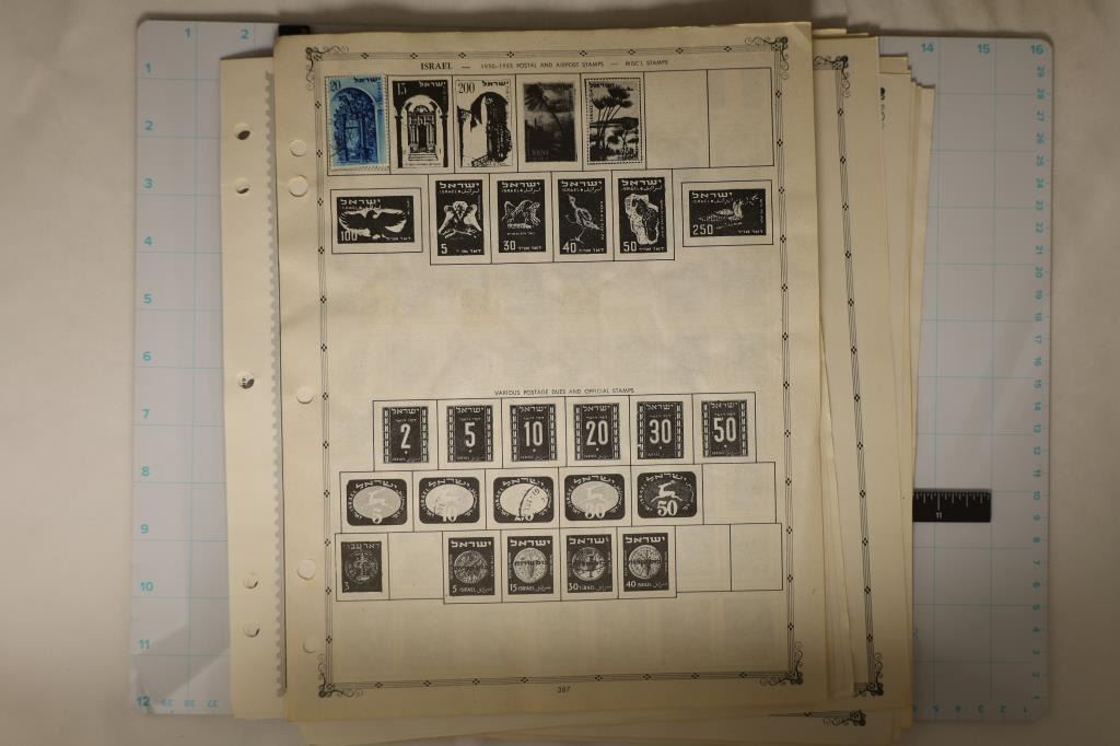 AND ISRAEL. 13 PAGES HAVE STAMPS ON THEM. NOT A COMPLETE COLLECTION