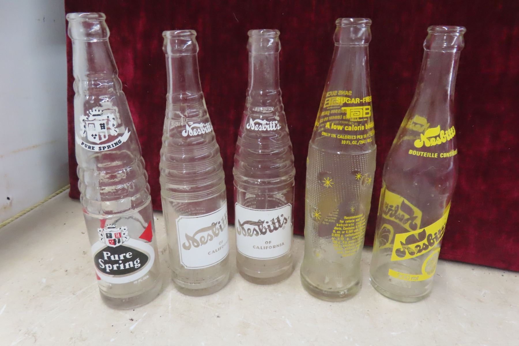 22 Soft Drink Bottles, Snow-white, Pepsi, Nesbitt's, Suncrest, Pure Spring and Coke