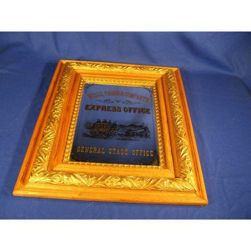 22" x 27" Framed size, gilded oak , stage coach Wells Fargo (contemporary mirror is silver and not blue)