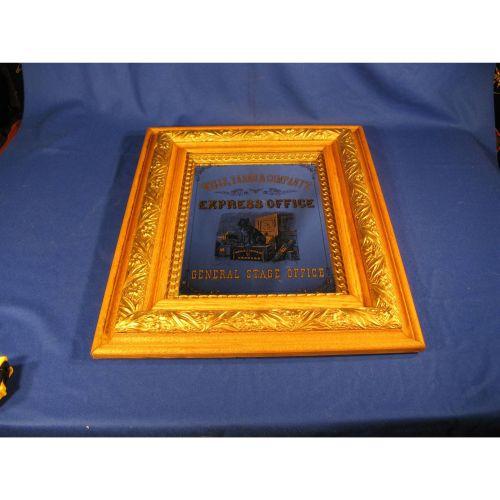 22" x 27" Framed size, gilded oak, strong box Wells Fargo, (contemporary mirror is silver and not blue )