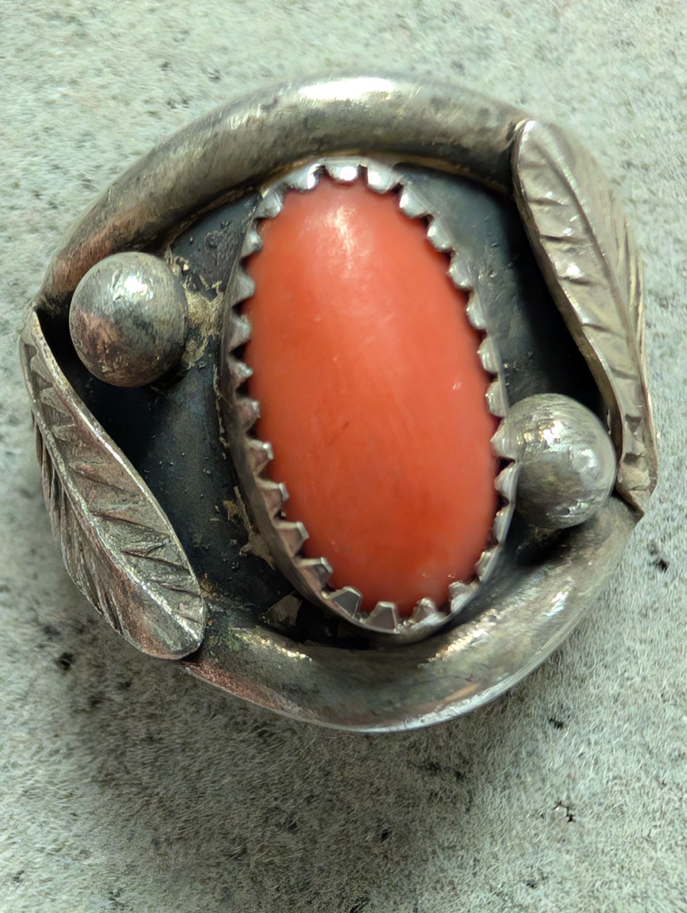 $220, SILVER(8g), CORALRING, size , appraised/retail value $220, ring resizeable for $50