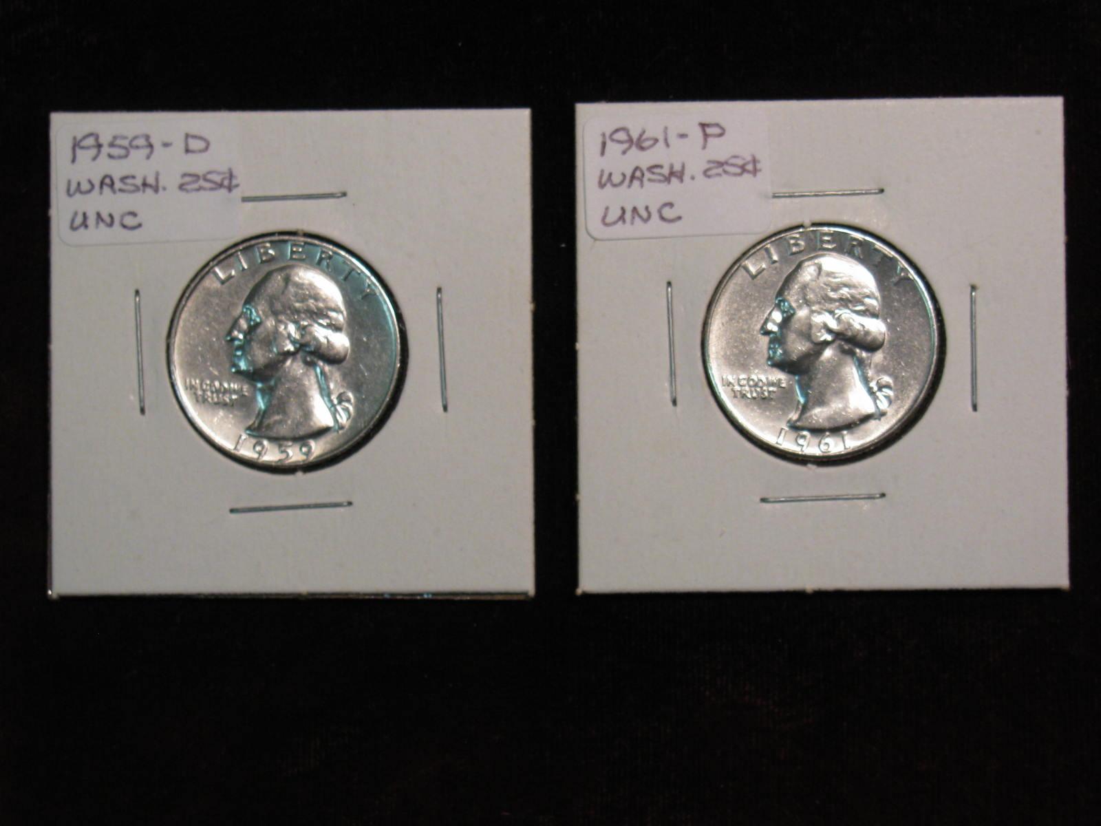 2203. 1959D, 61P Washington Quarters BU.