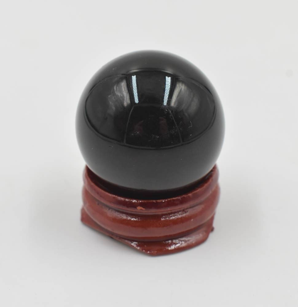 #221-NATURAL BLACK OBSIDIAN SPHERE BALL +STAND