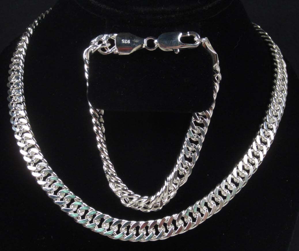 2212 - SILVER 12MM NECKLACE & BRACELET SET - MARKED 925